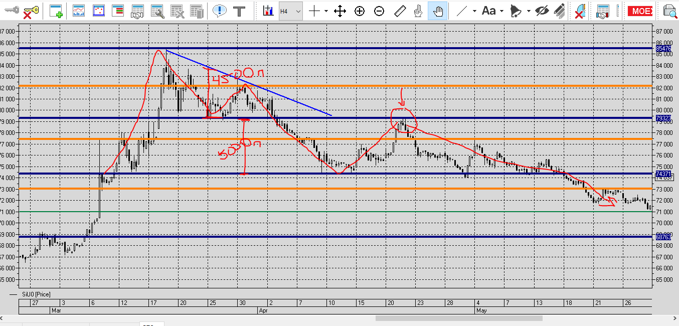 График доллар/рубль фигура НР на 2 ТФ D и Н4