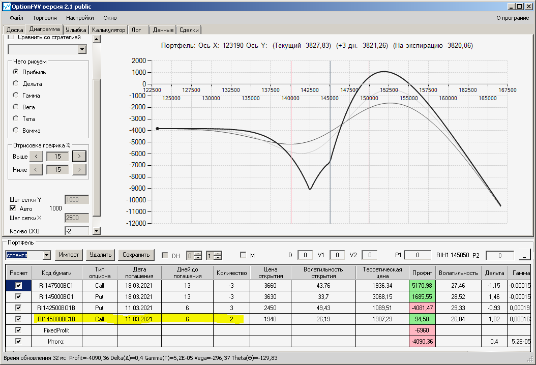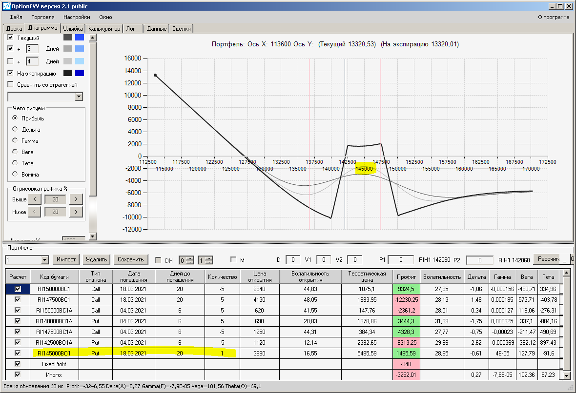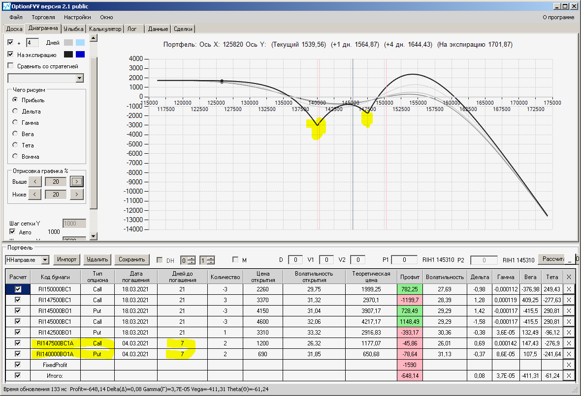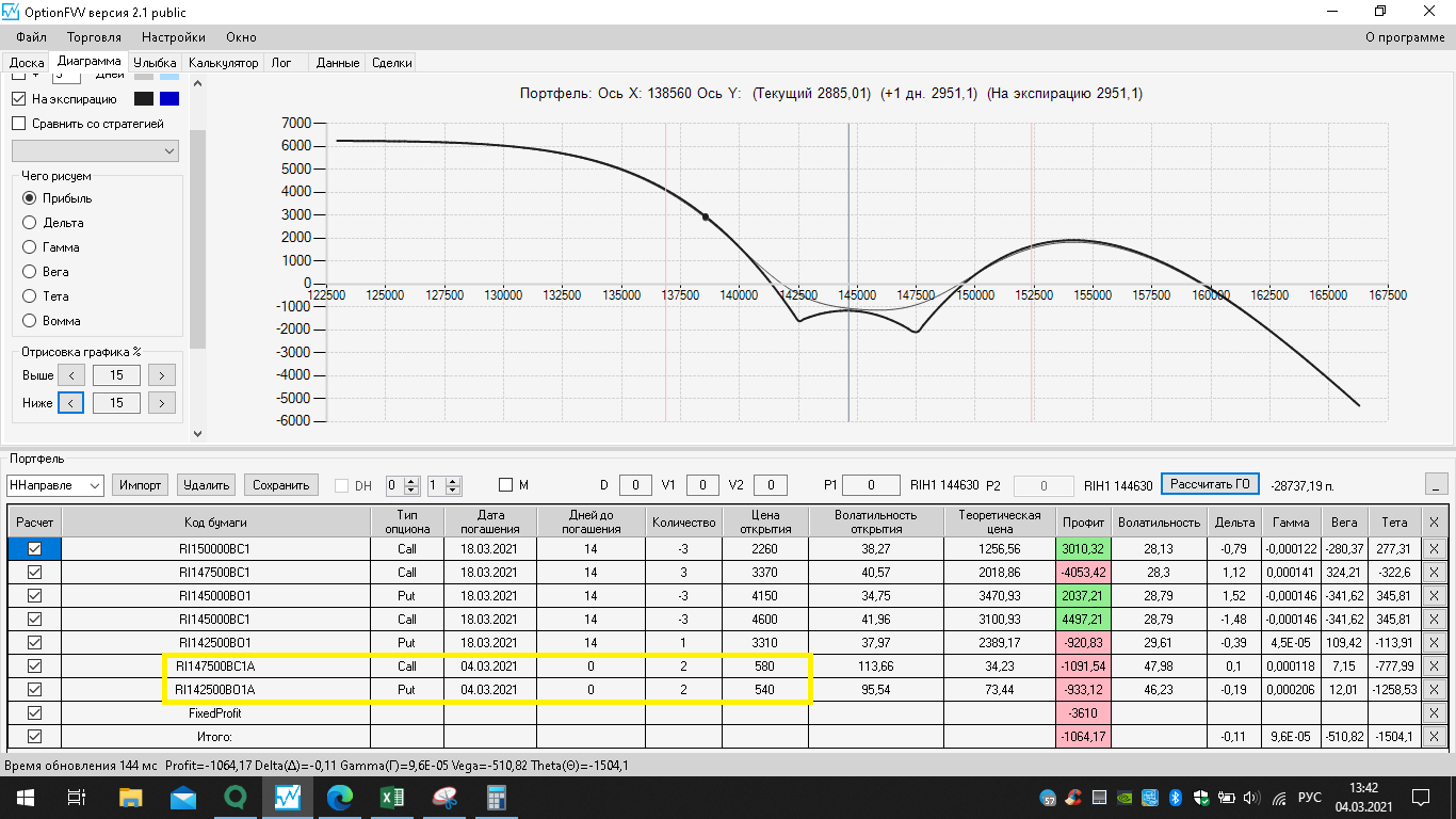 1-Календарный спред 145000 пут плюсит в моменте, есть возможность закрыть его с плюсом.