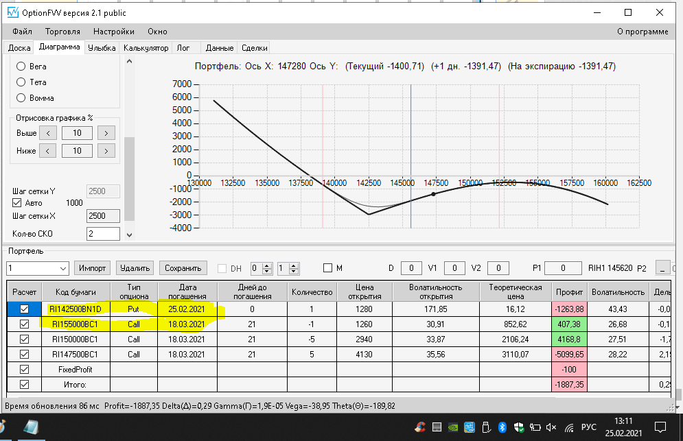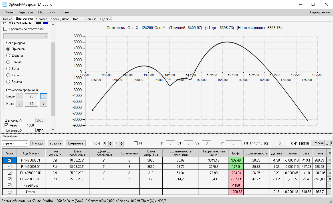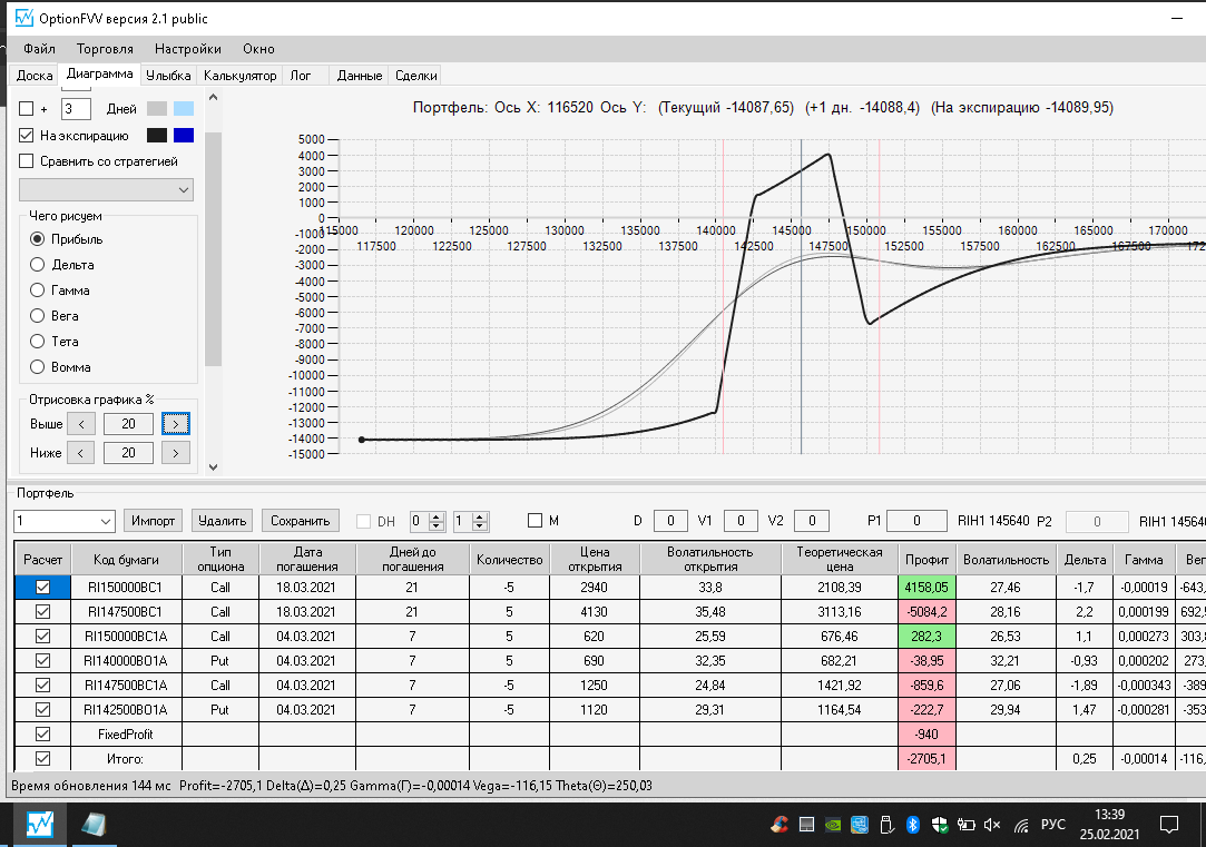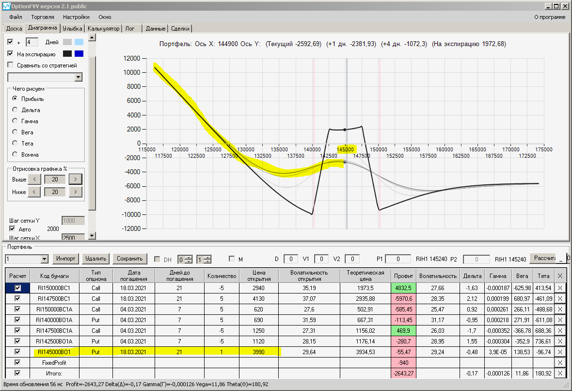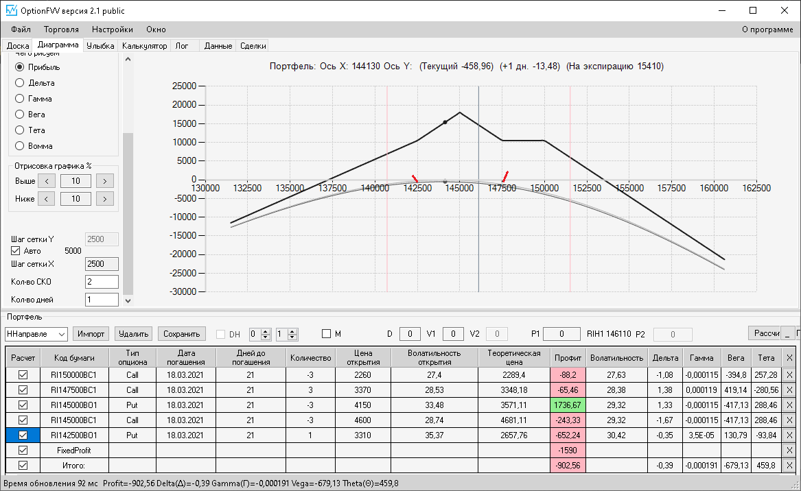 1-Календарный спред 145000 пут плюсит в моменте, есть возможность закрыть его с плюсом.