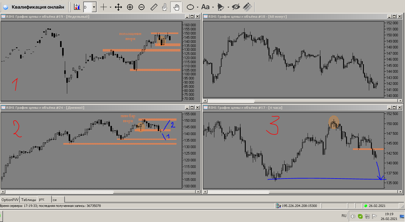 фьючерс РТС график в моменте идёт вниз это чётко видно на h4