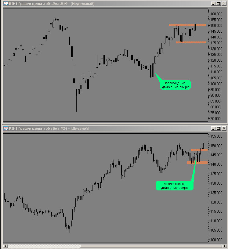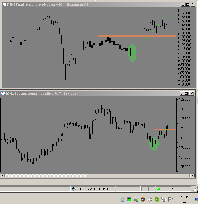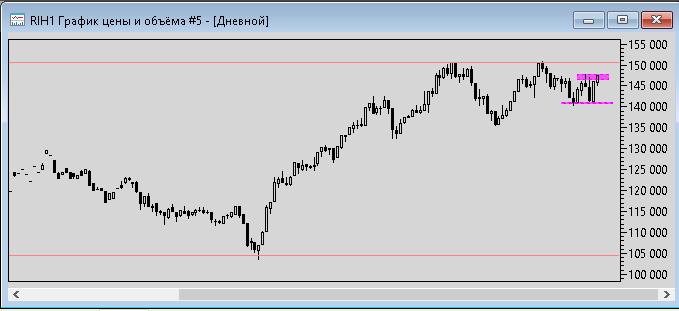 фьючерс РТС, после пробоя уровня сопротивления идёт вверх.