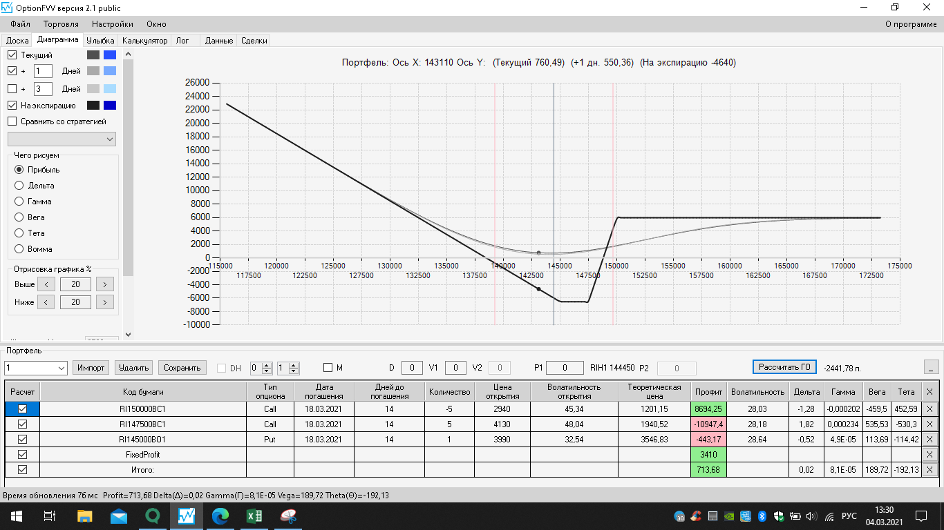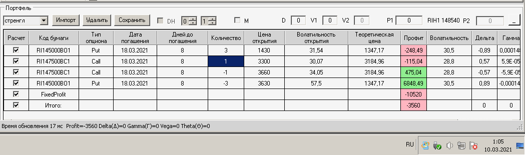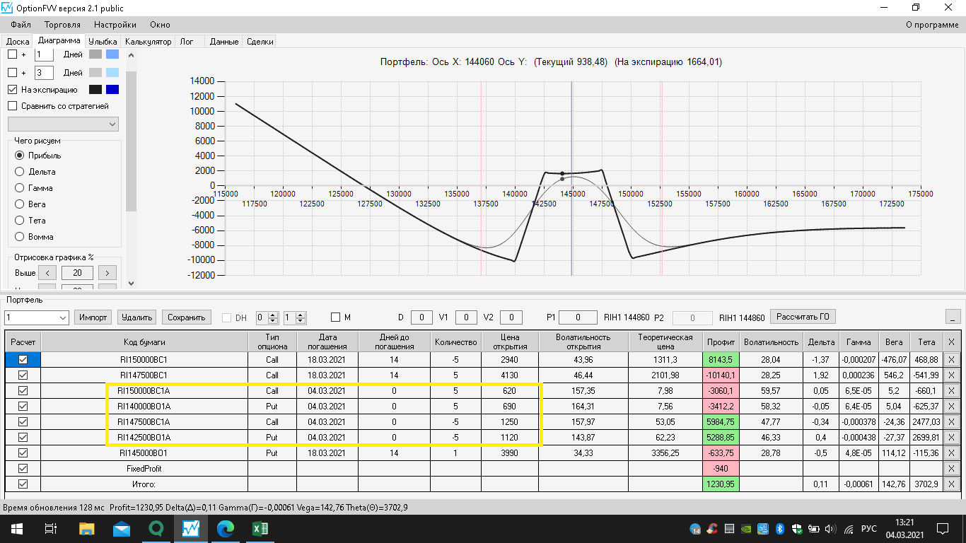 Сегодня 04.03.2021 года (четверг), день экспирации недельных опционов, закрываю недельные страховки.
