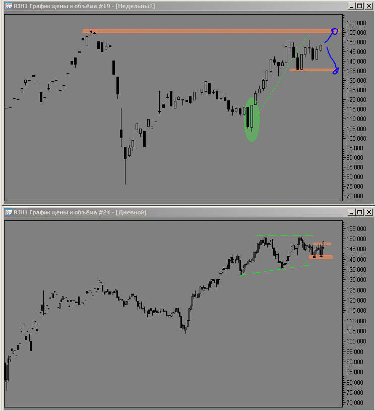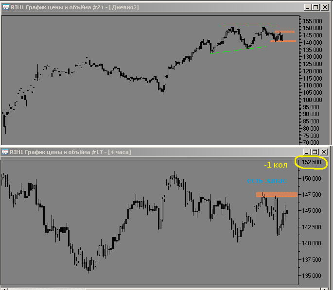 пока закрывал страховки, возникла опасность снижения фьючерса, решил купить недельные два пута центрального страйка