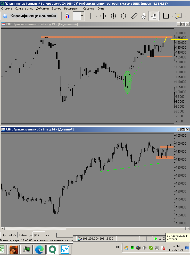 11.03.2021 года вечер четверга, фьючерс проходит ещё один уровень тренд движется вверх