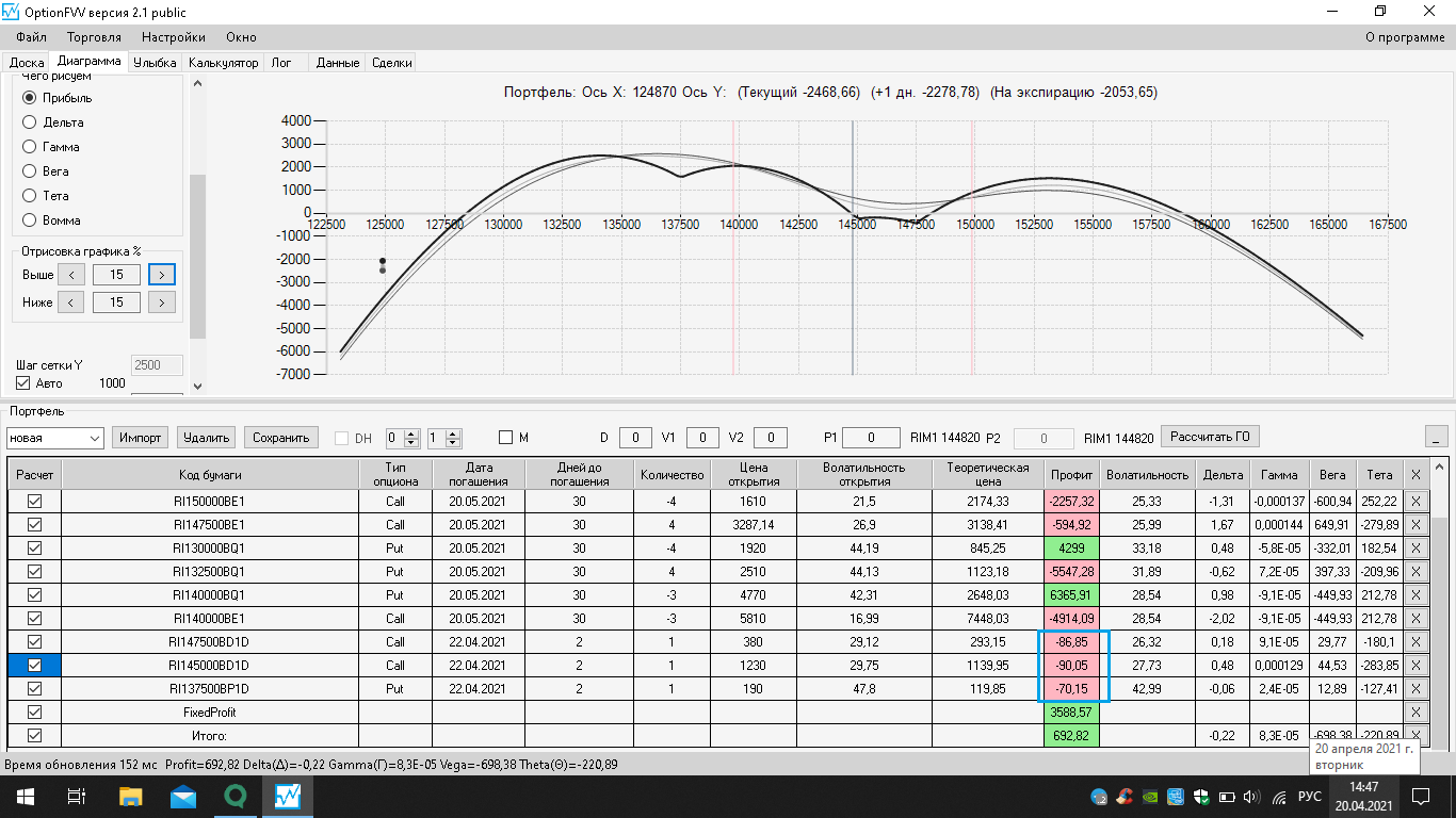 Сегодня 08.04.2021 г. (четверг), истекли недельные опционы, закрываю по факту