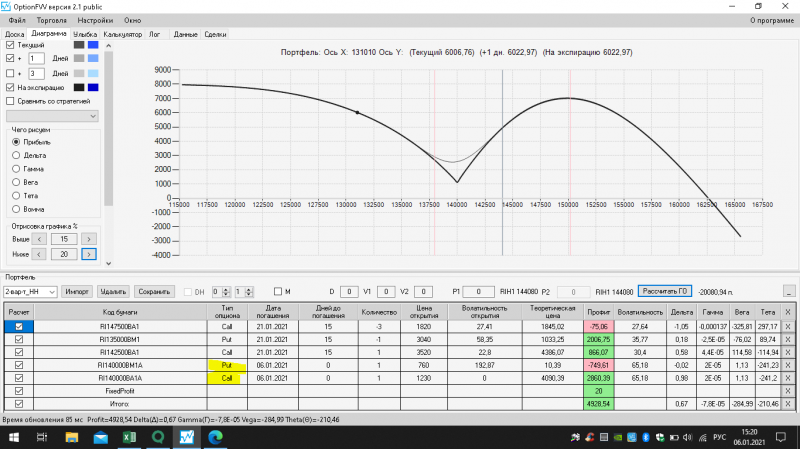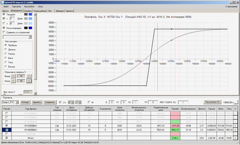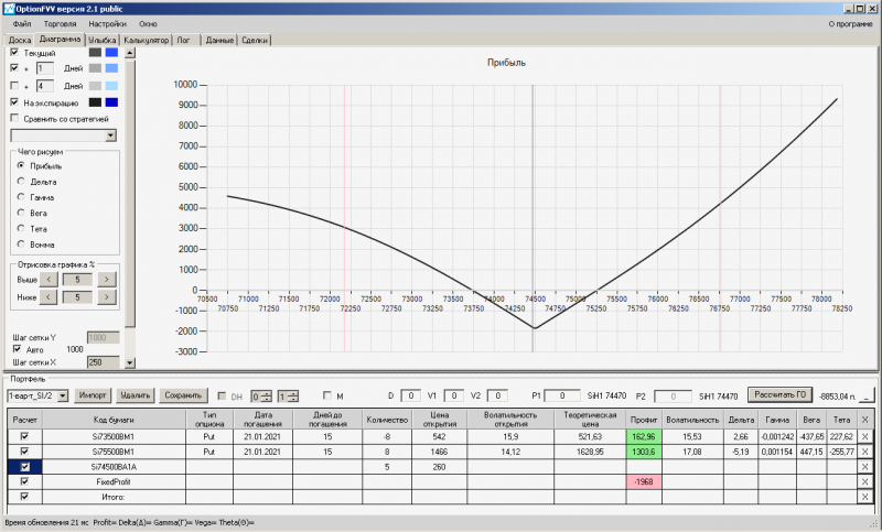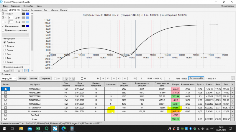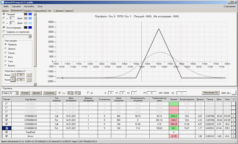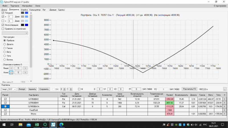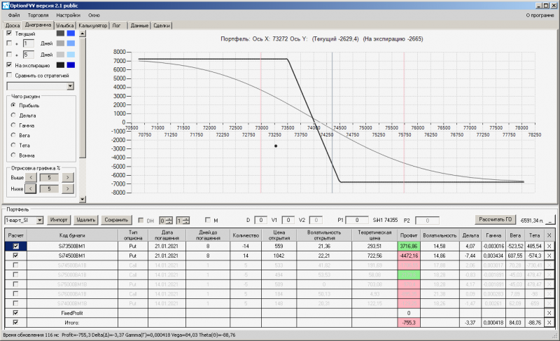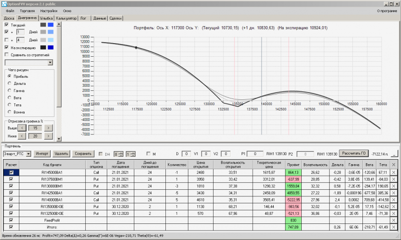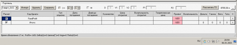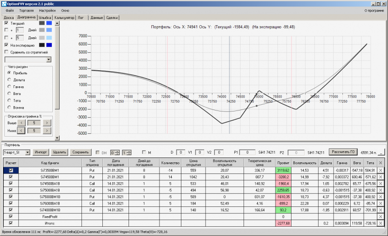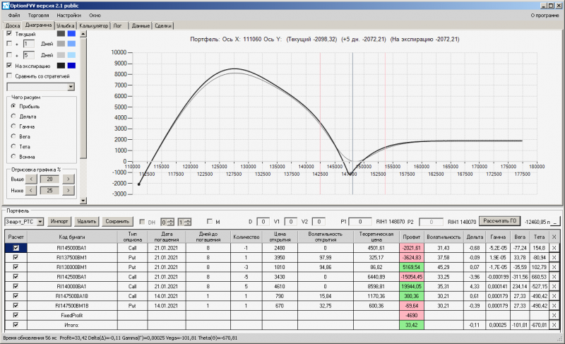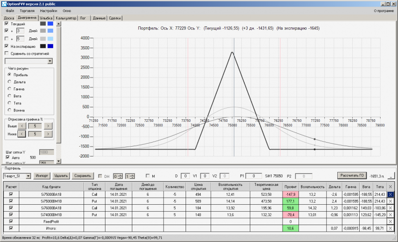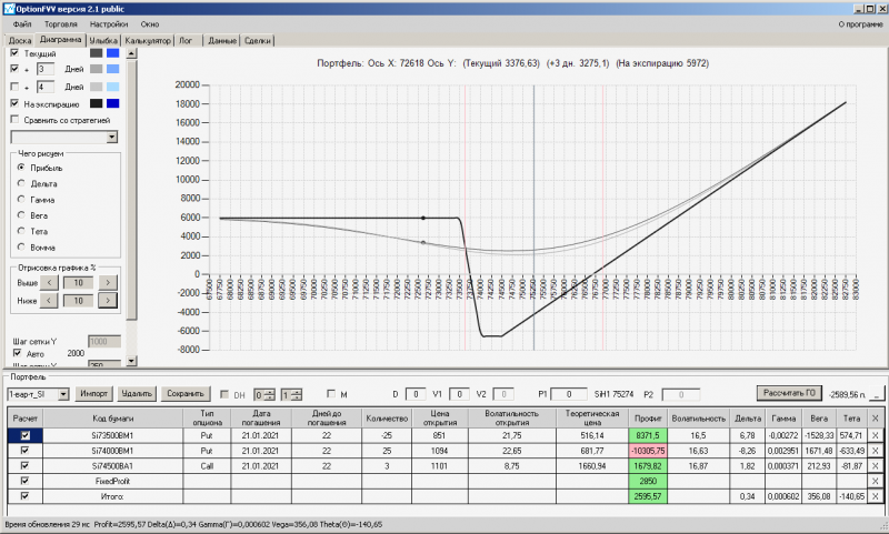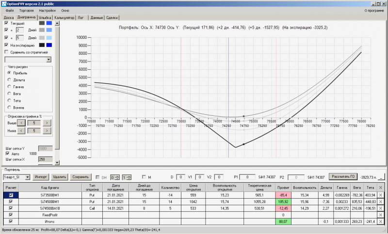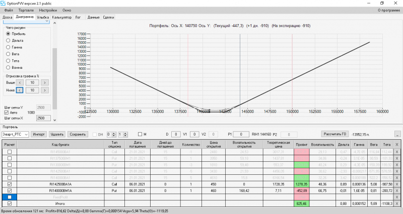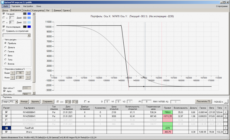 пут-спред с временно отключенной страховкой, у него текущая цена фьючерса ушла вправо, посмотрю что завтра будет, пока страховка около нуля ни прибыли ни убытка по ней, может завтра что нибудь изменится.