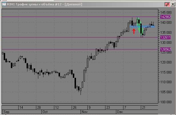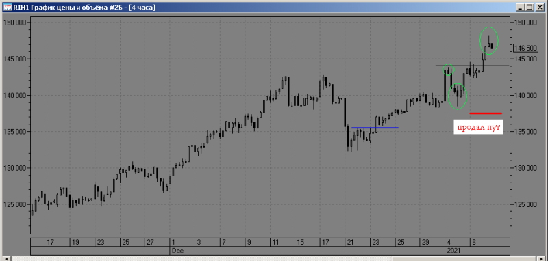 фьючерс РТС движется вверх от пробитого уровня 142580, страховку можно не трогать до вечера, вечером перед клирингом поменяю страховку на новую, на следующую неделю.