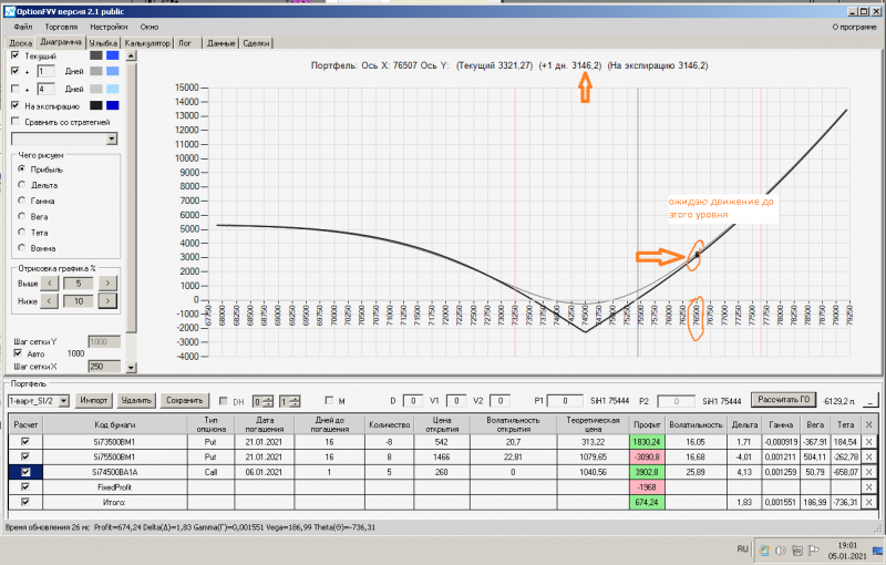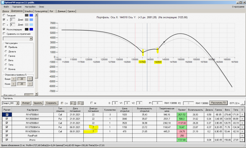 причина добавления недельных страховок на праздничный день 7 января, это контрольные точки по обе стороны от текущей цены фьючерса