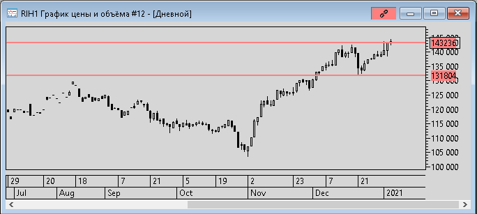 Сегодня 13.01.2021 года (среда) положение дел по фьючерсам