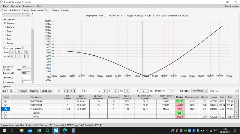 Сегодня 06 января 2021 года вечером пишу из Дома, сегодня среда день экспирации, завтра выходной у биржи торгов нет, поэтому сегодня день экспирации недельных опционов вместо четверга.