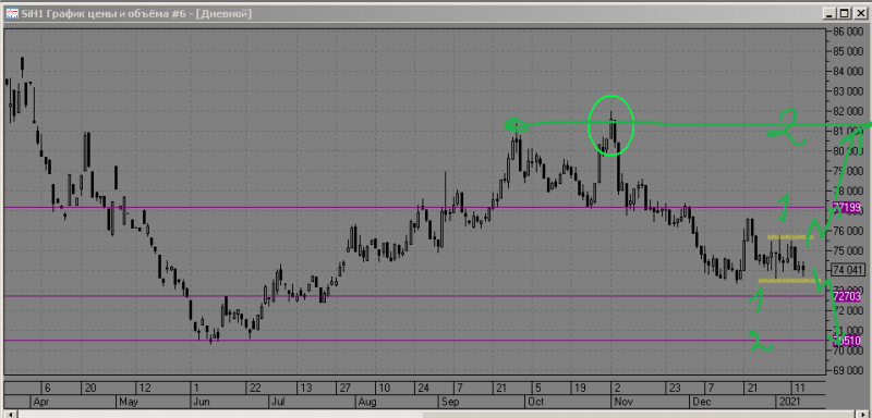 Сегодня 14.01.2021 года (xtndthu) положение дел по фьючерсам