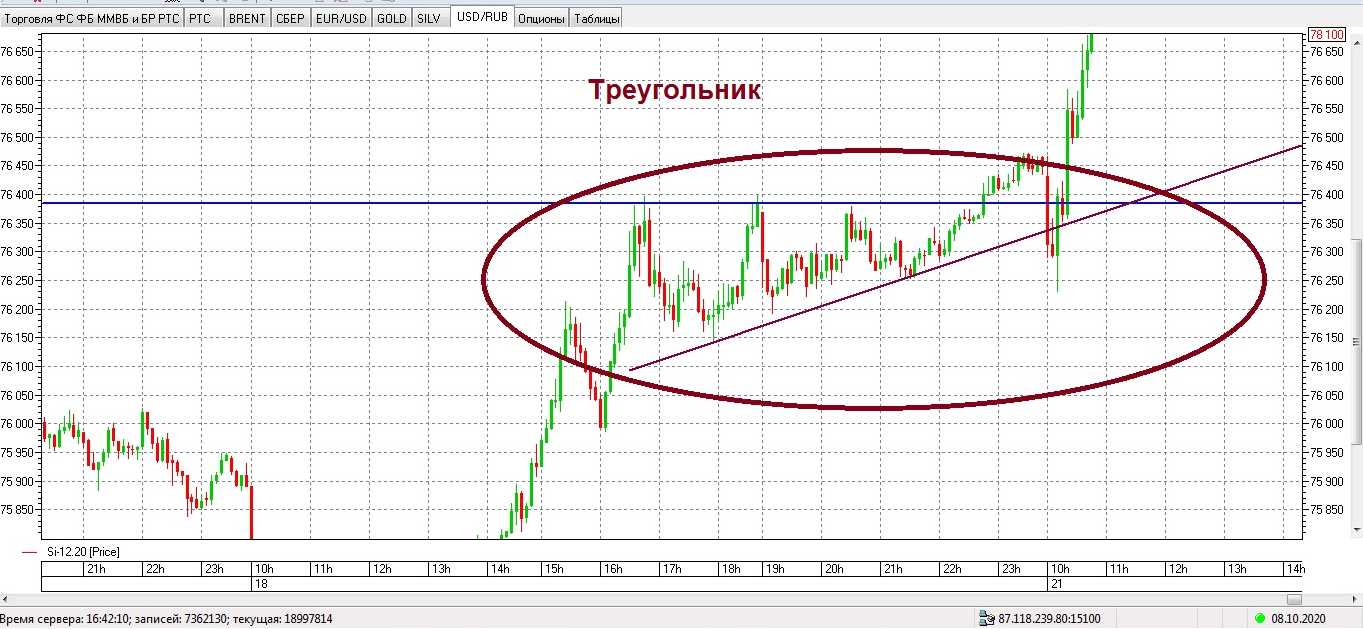 Андрей, треугольник у Вас "спорный" - цена, вышла из него с закреплением ( две свечи закрылись ниже выхода), затем, войдя назад в треугольник, вышла из него в другом направлении.