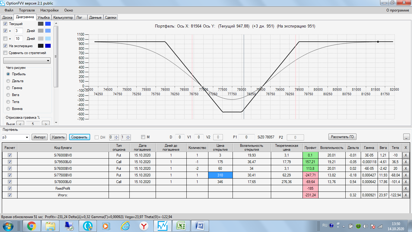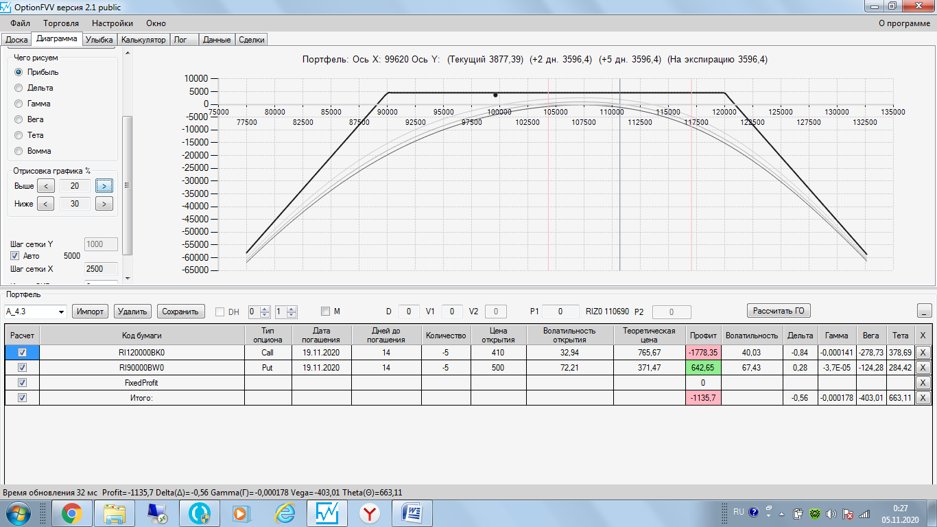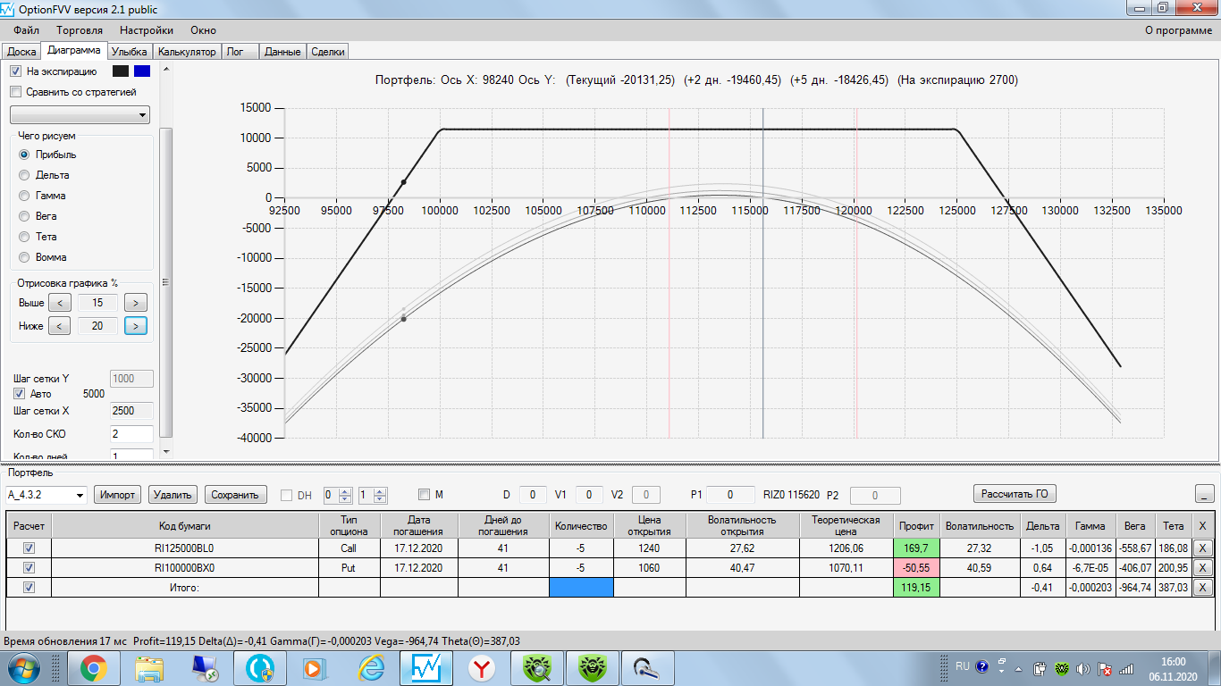 Изначально это был длинный перевернутый стренгл. А в целом, с вашими соображениями абсолютно согласен, большое спасибо. Перепутал линию текущей цены с ценой через 5 дней, принял желаемое за действительное)... Правильно говорит Дмитрий - надо быть внимательнее, проверять и перепроверять! Семь раз отмерь, один отрежь...