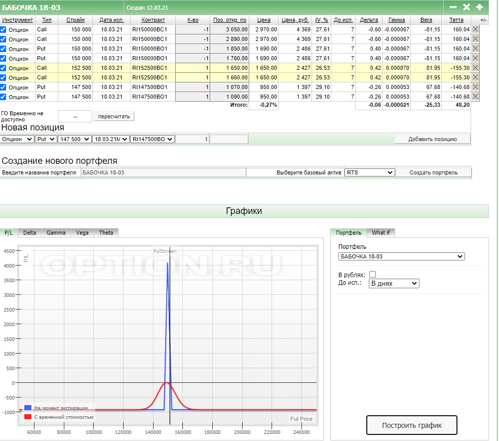 ОК "БАБОЧКА" на недельных опционах (экспирация 18.03, сборка 11.03 вечер Чт).