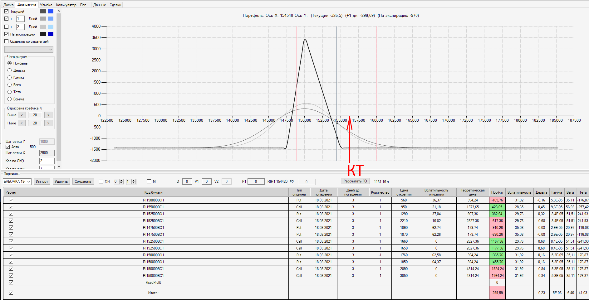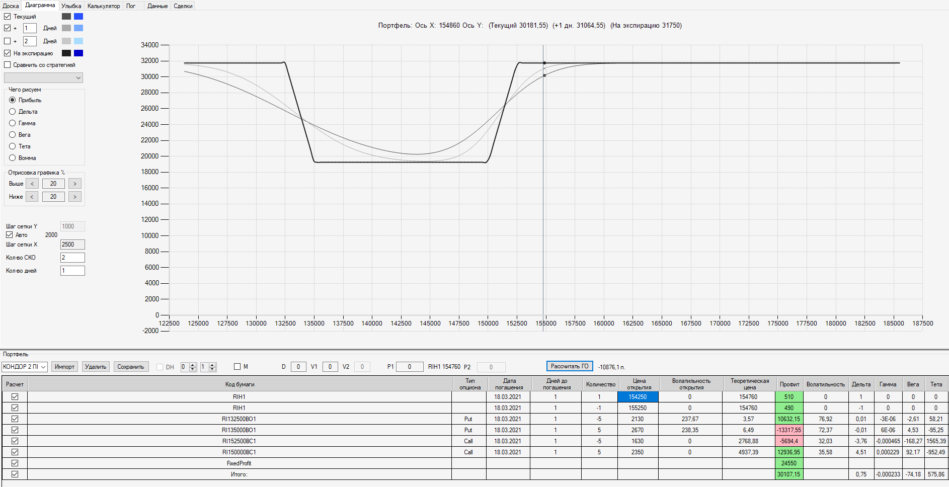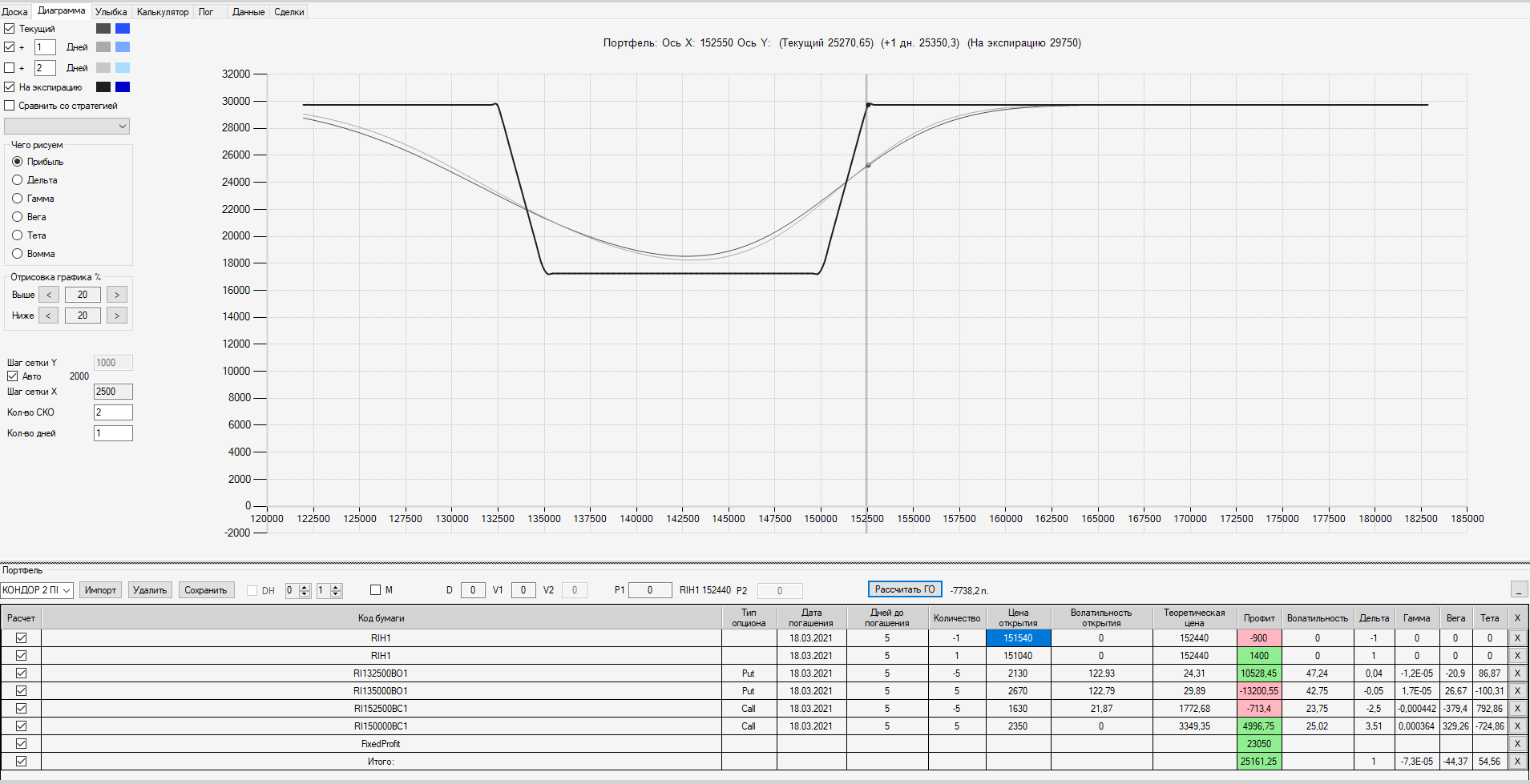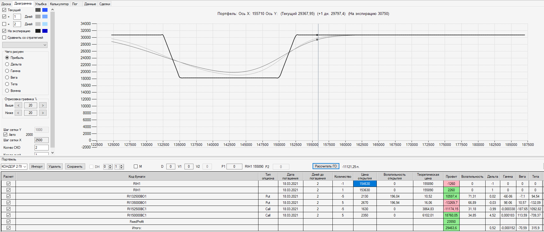 При проходе 2500 пунктов собрал ещё одну ОК "БАБОЧКА" на недельных опционах (экспирация 18.03, сборка 15.03 день Пн).