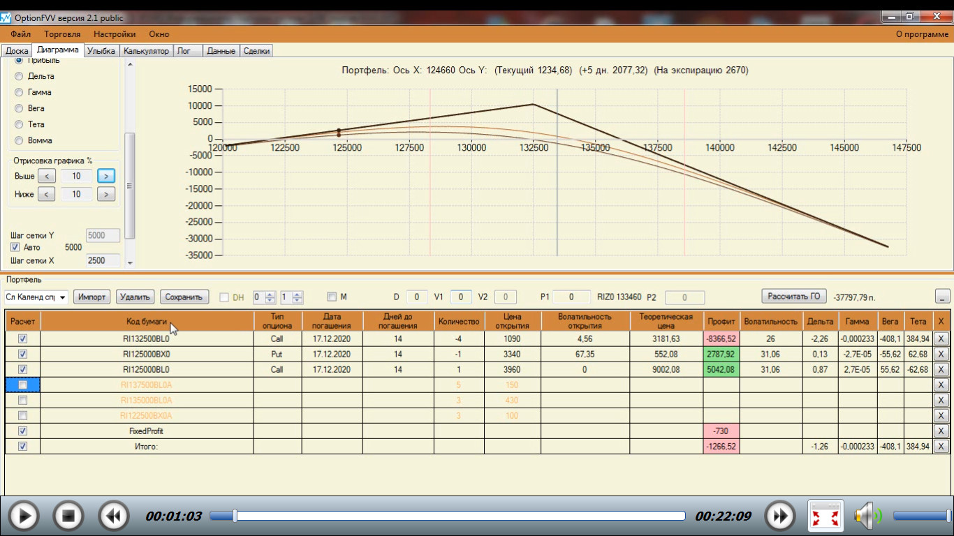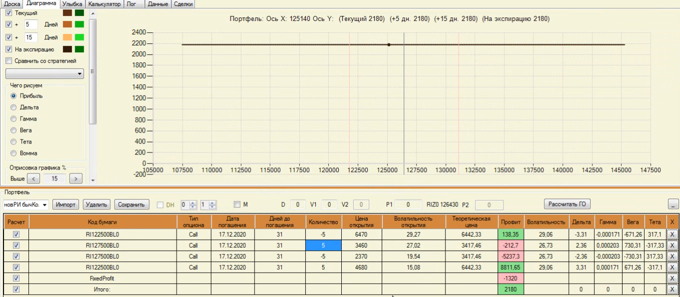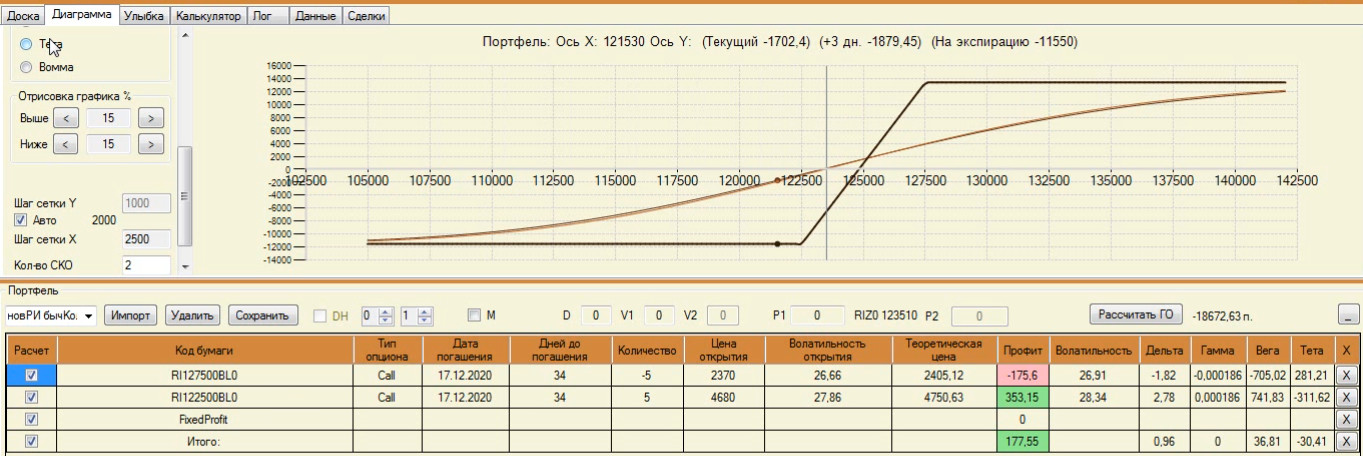 Сдвинул (роллировал) вправо с 122/125 на страйки 127/130. Так же улучшил сам спрэд достроив его дополнительной продажей путов слева с целью приподнять вверх.