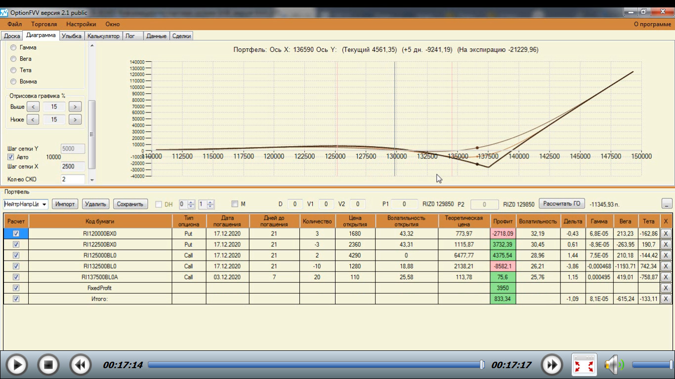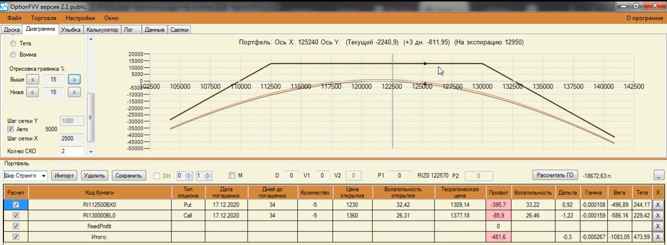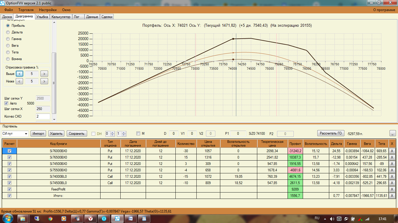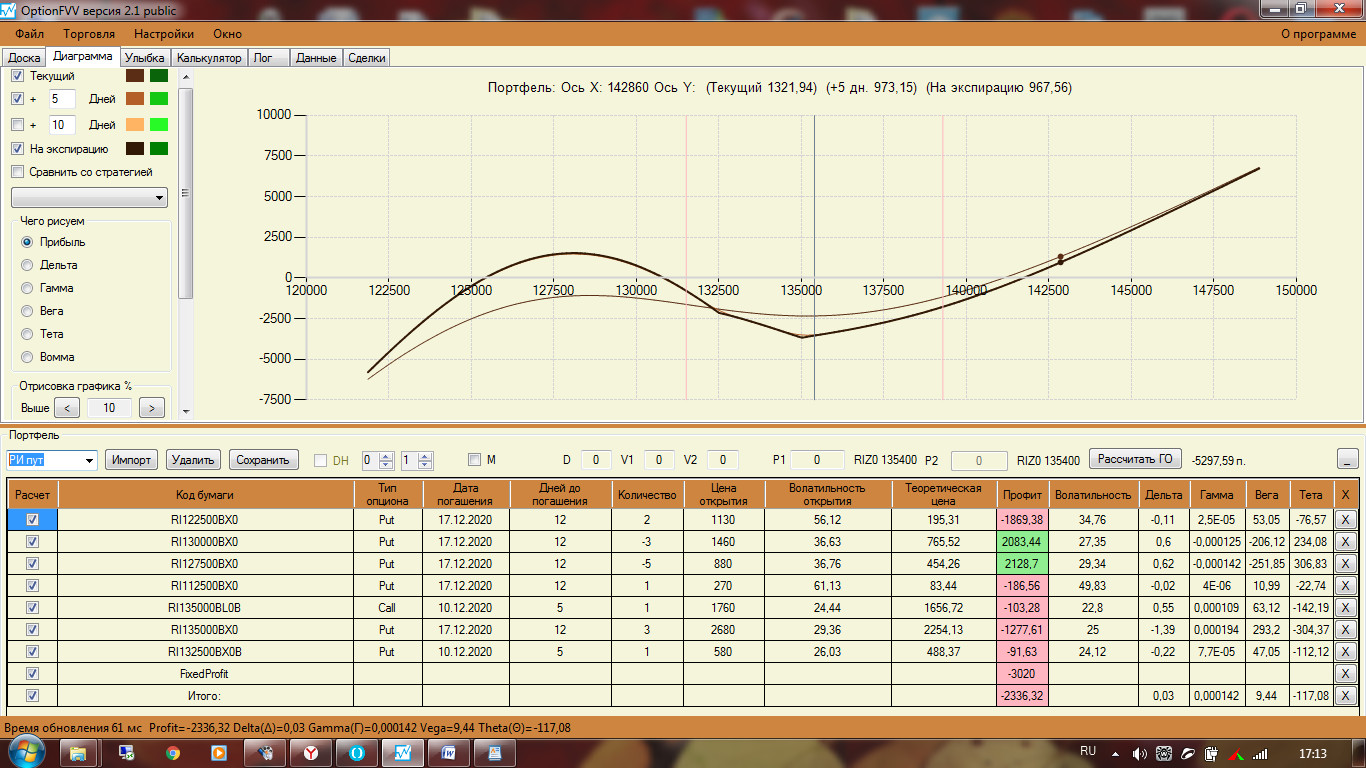 Продолжаю управлять Широким Стрэнглом (17.12). Застрахован на выходные :