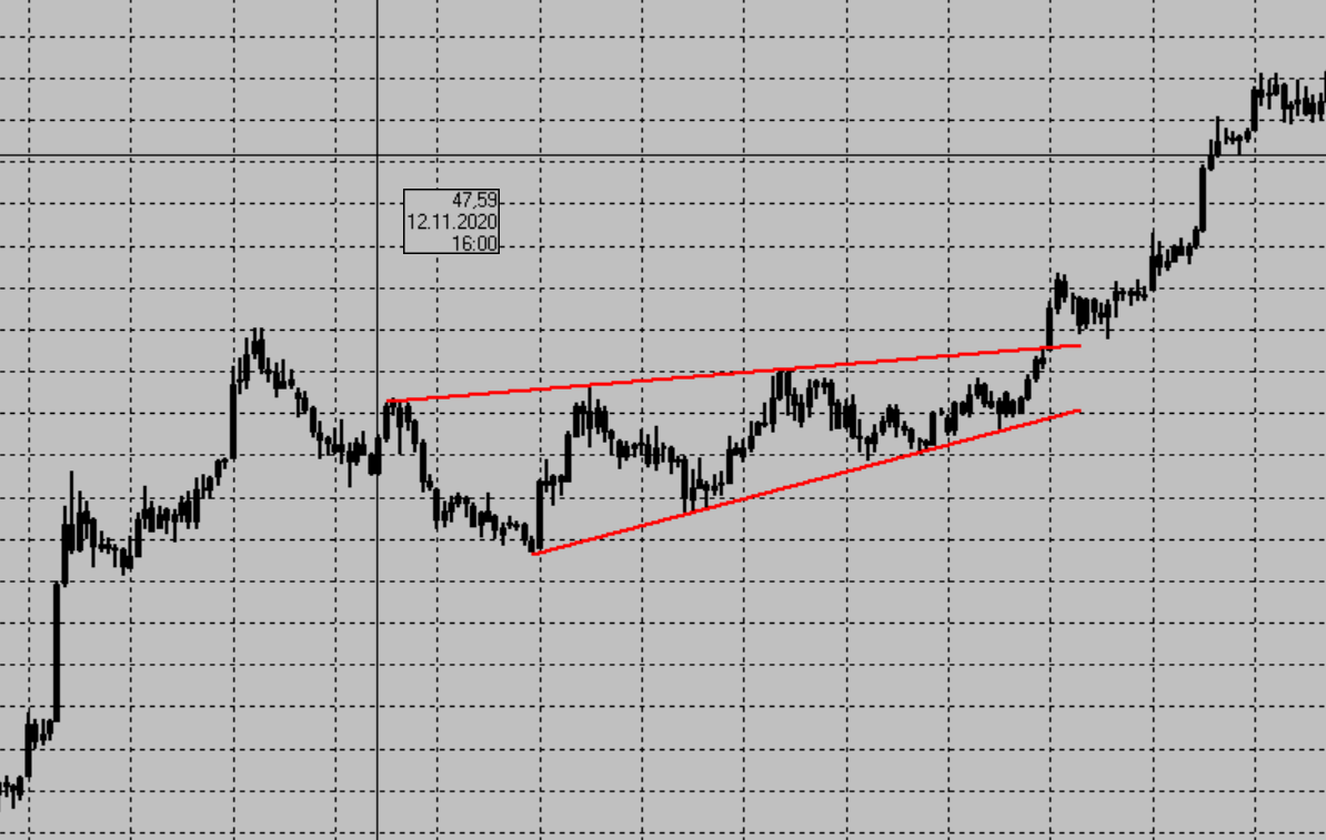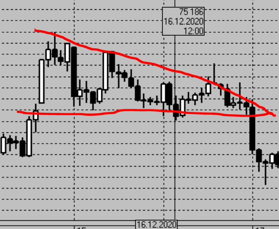 Важно чтоб цена трендом подошла к фигуре сверху вниз, либо снизу вверх.