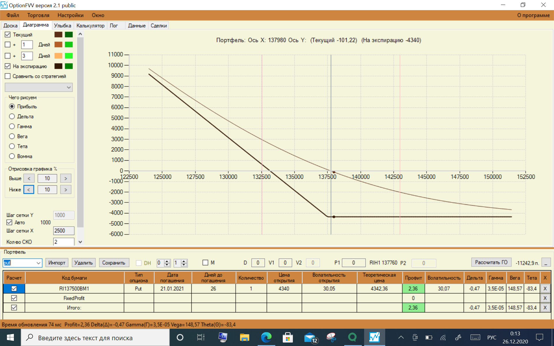 РТС убыток = 12500 п. умножаем на коэфициент опциона 1.5 = 18750 рублей.