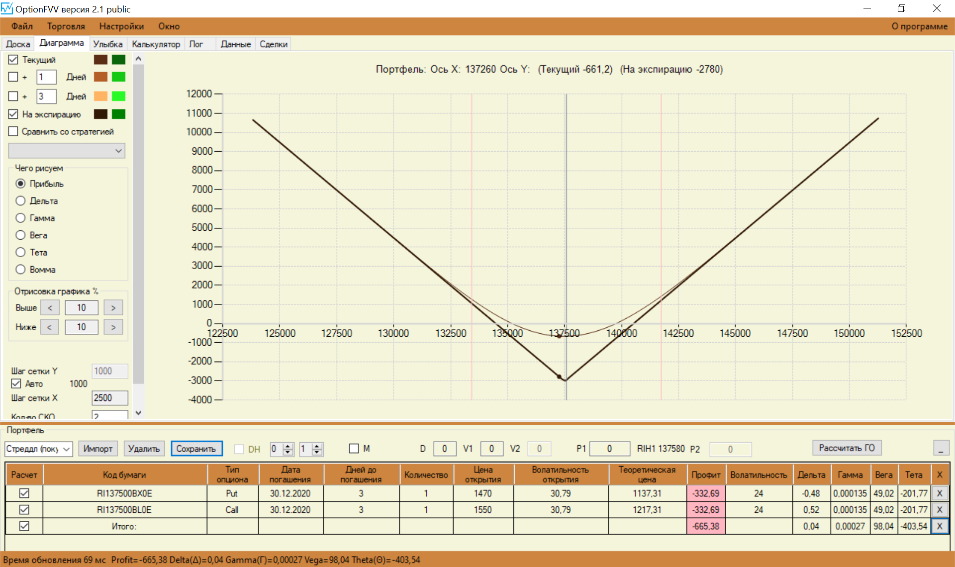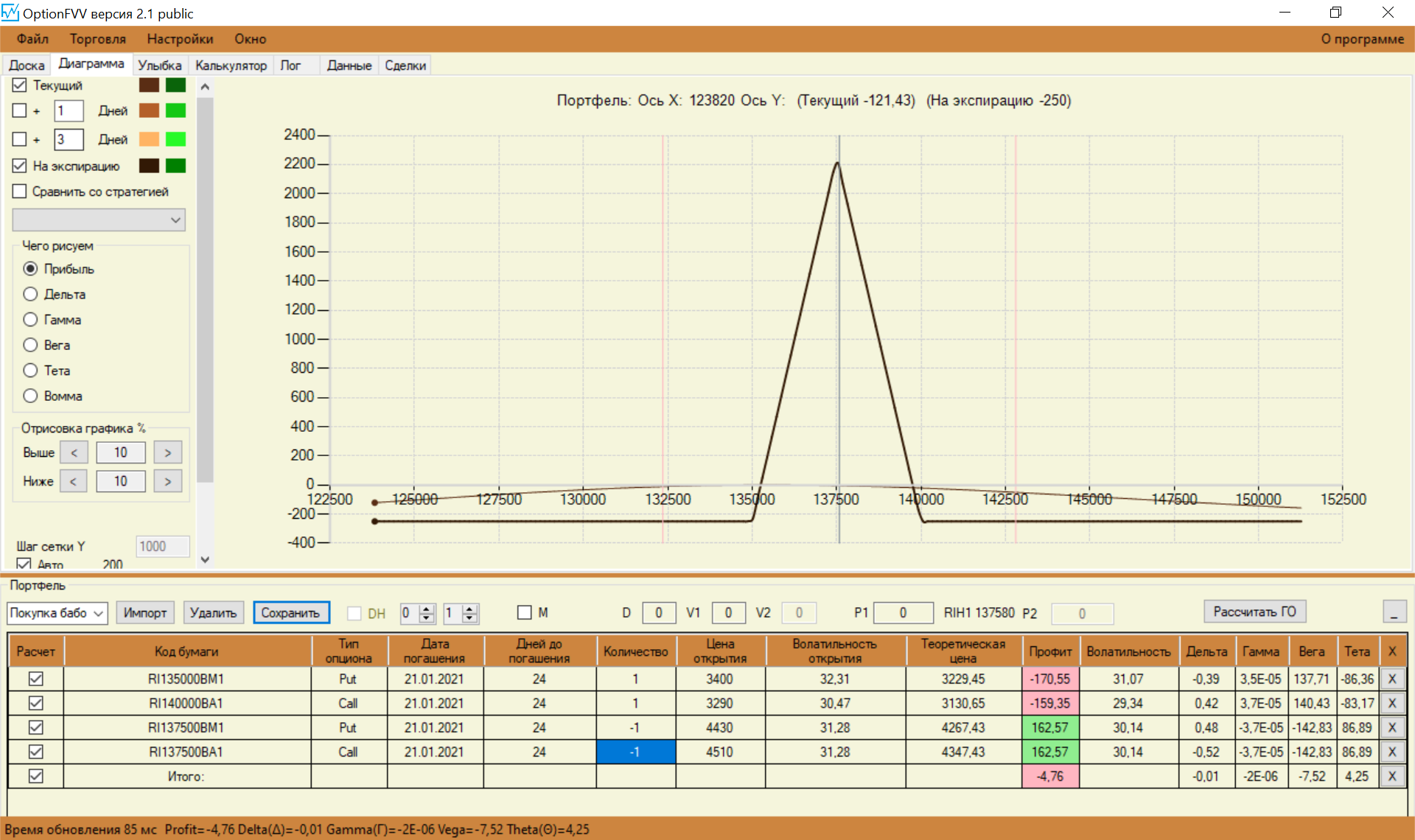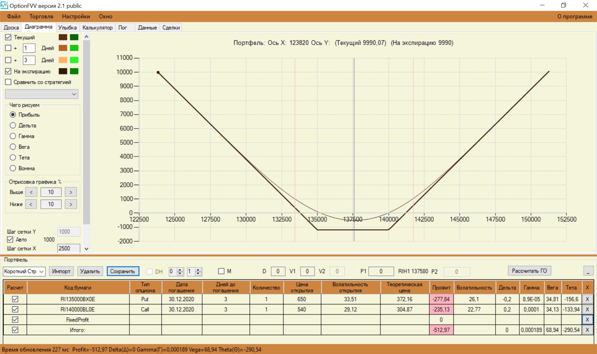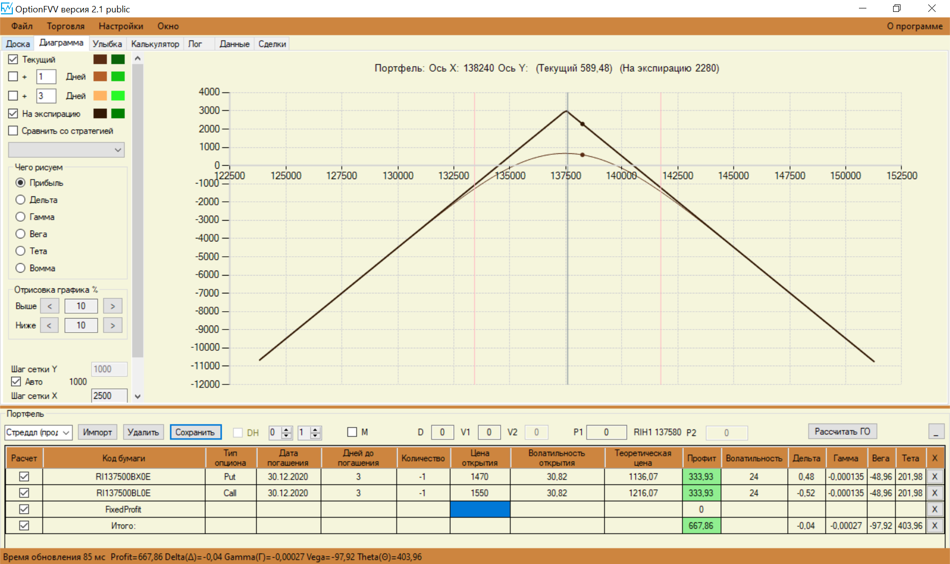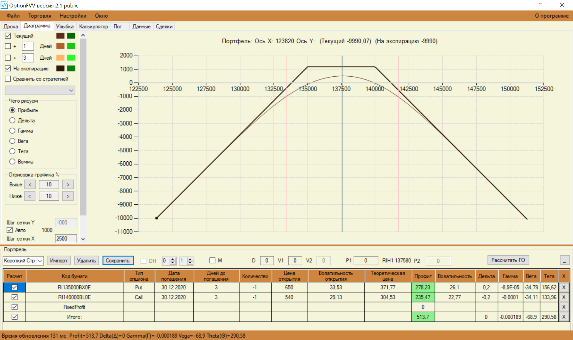 Перестроил свои спреды с учетом замечаний. Стартовую сумму увеличил до 150 000. Так как сегодня выходной, то цены взял теоретические, чтобы попрактиковаться.