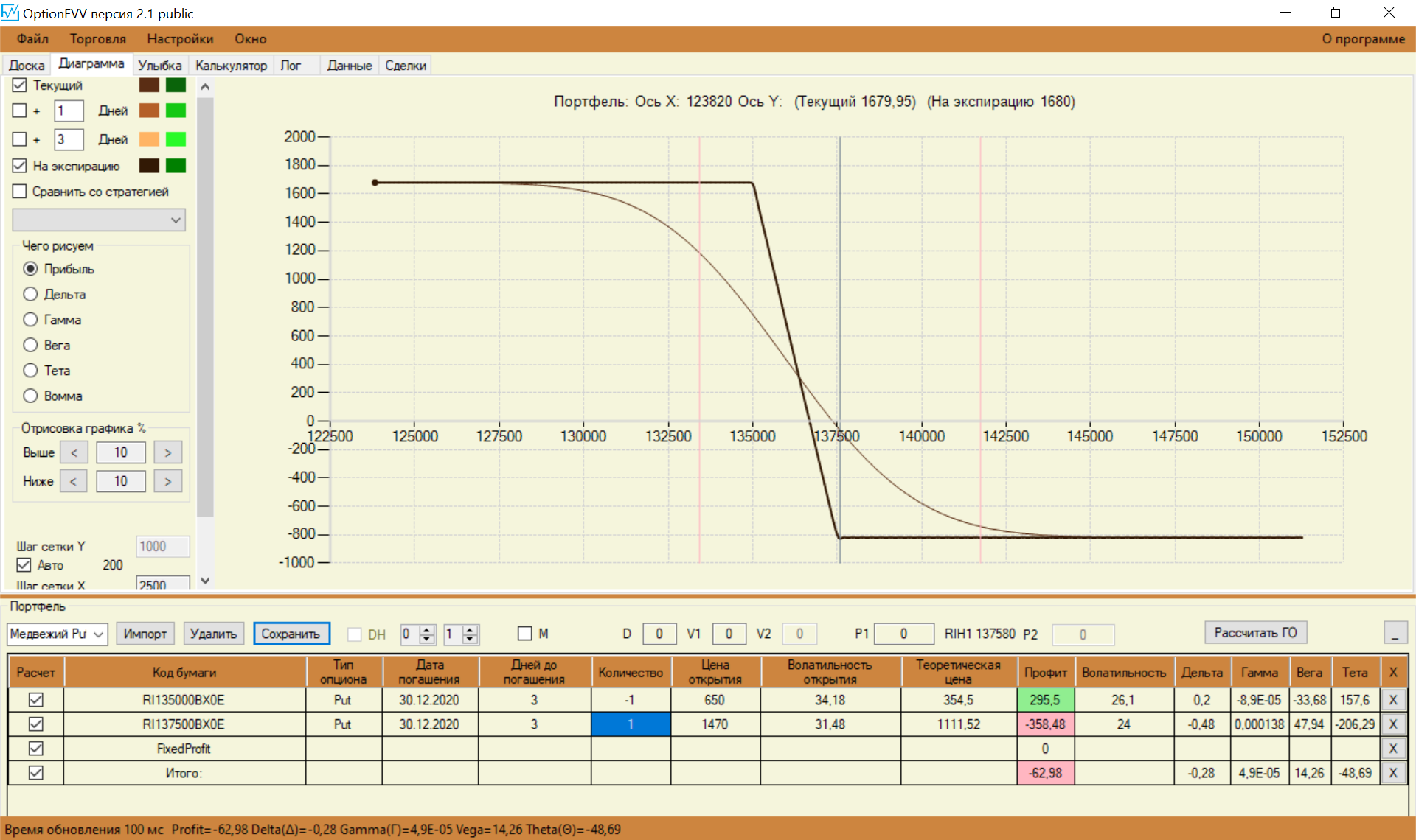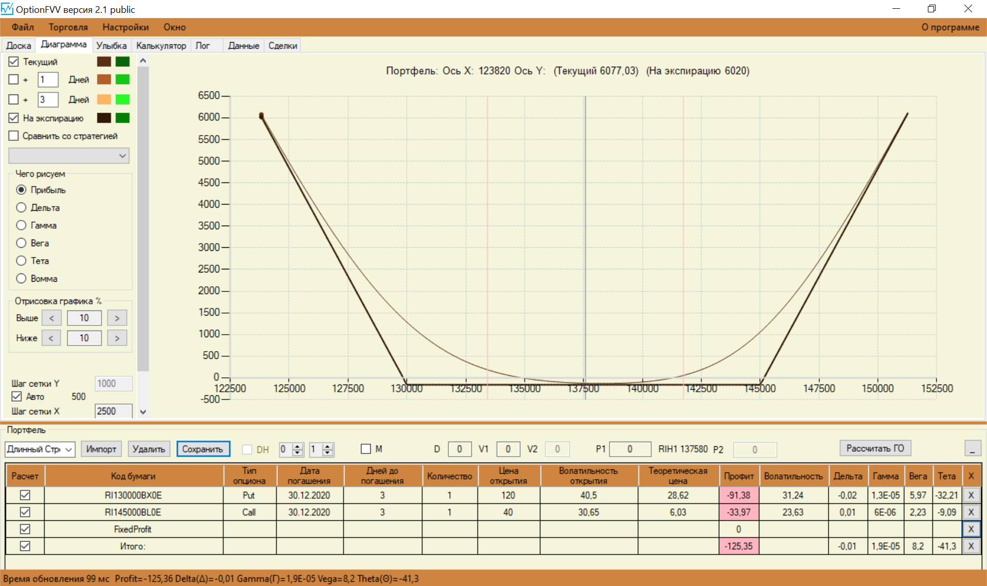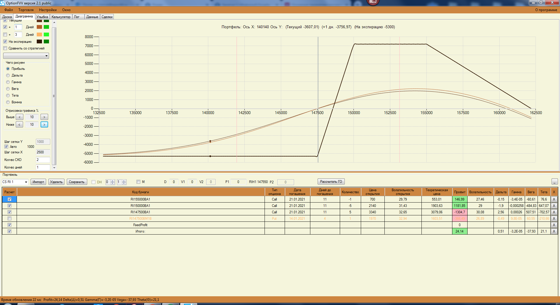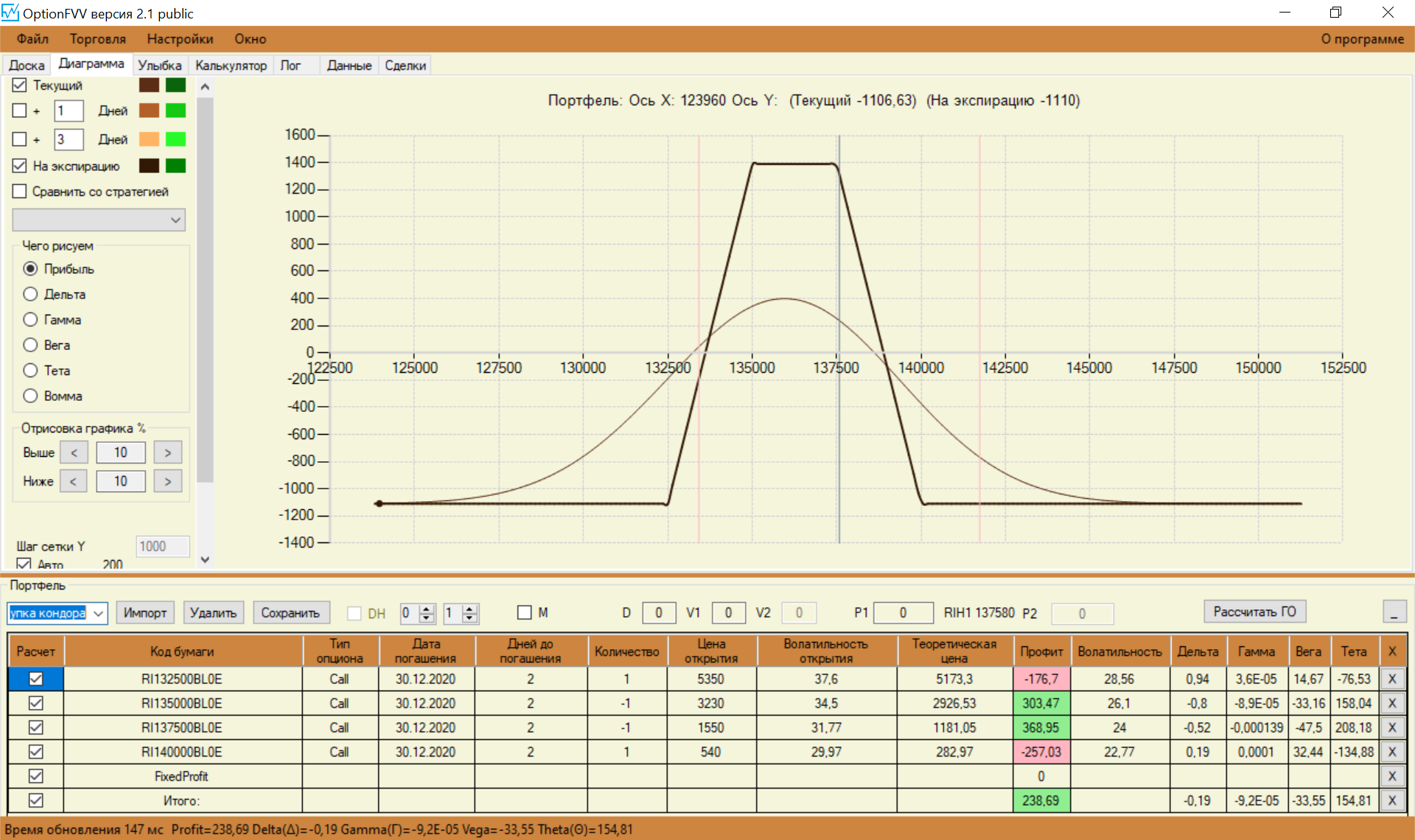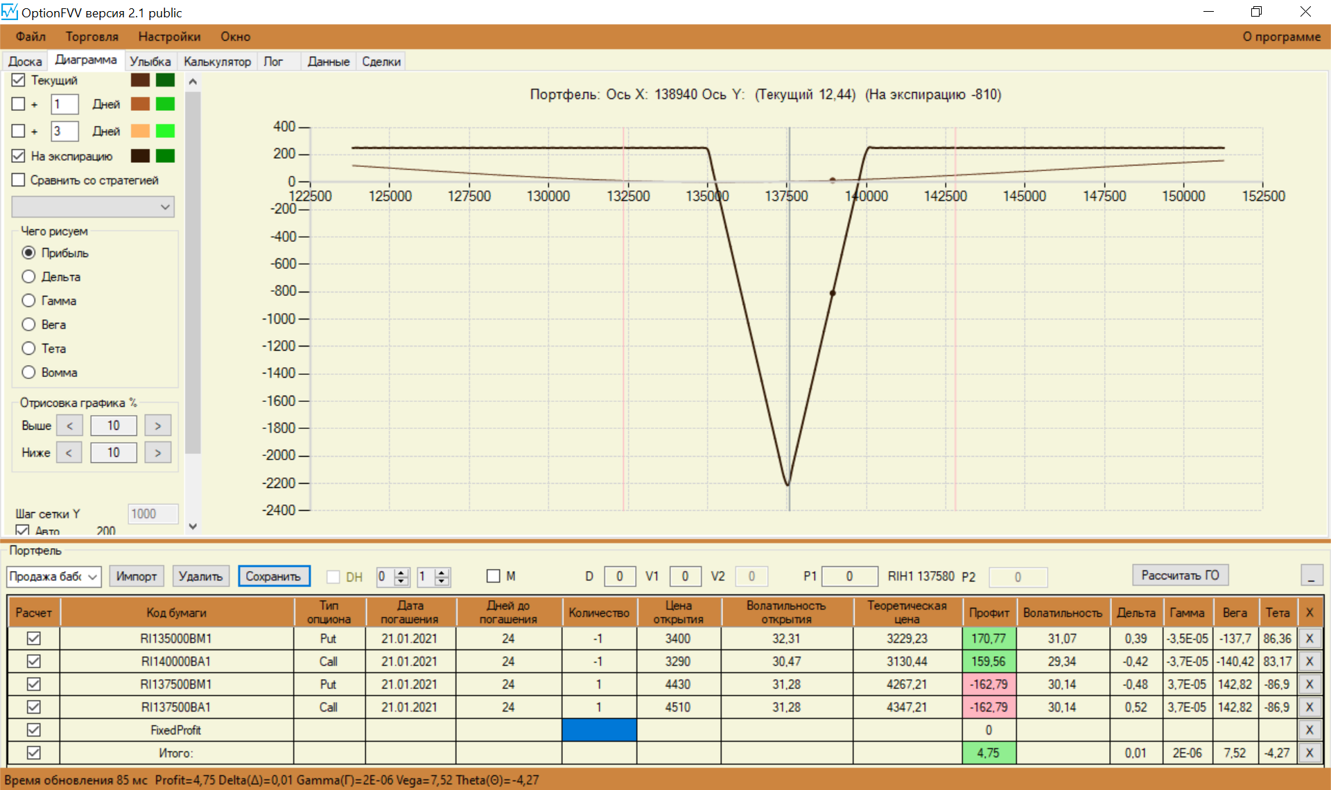 Перестроил свои спреды с учетом замечаний. Стартовую сумму увеличил до 150 000. Так как сегодня выходной, то цены взял теоретические, чтобы попрактиковаться.