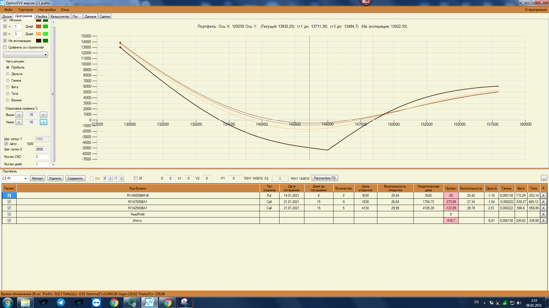 Геннадий Кирпичниковнаписал7 января 2021 в 17:27Если строите парные спреды на РТС и на SI, тогда нужно чтобы прибыли и убытки в базовых конструкциях у них примерно совпадали, а у Вас сильно разнятся, это нужно для того, что-бы два эти спреда страховали друг друга.