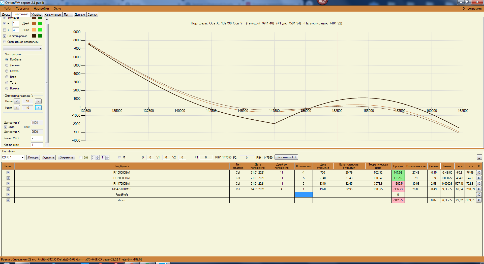 Перевел в ратио спред (т.к. стартовую сумму взял 150 000, то на один проданный контракт ГО хватает):