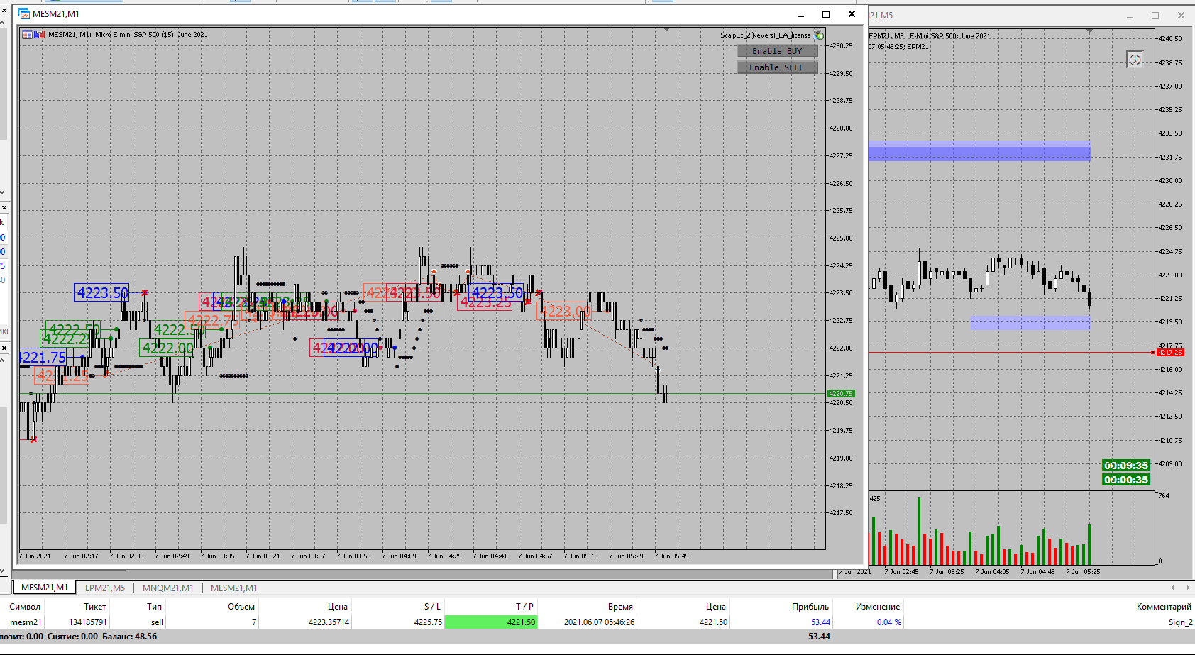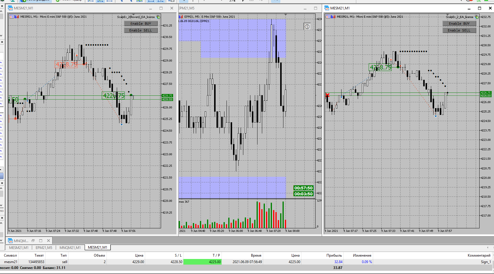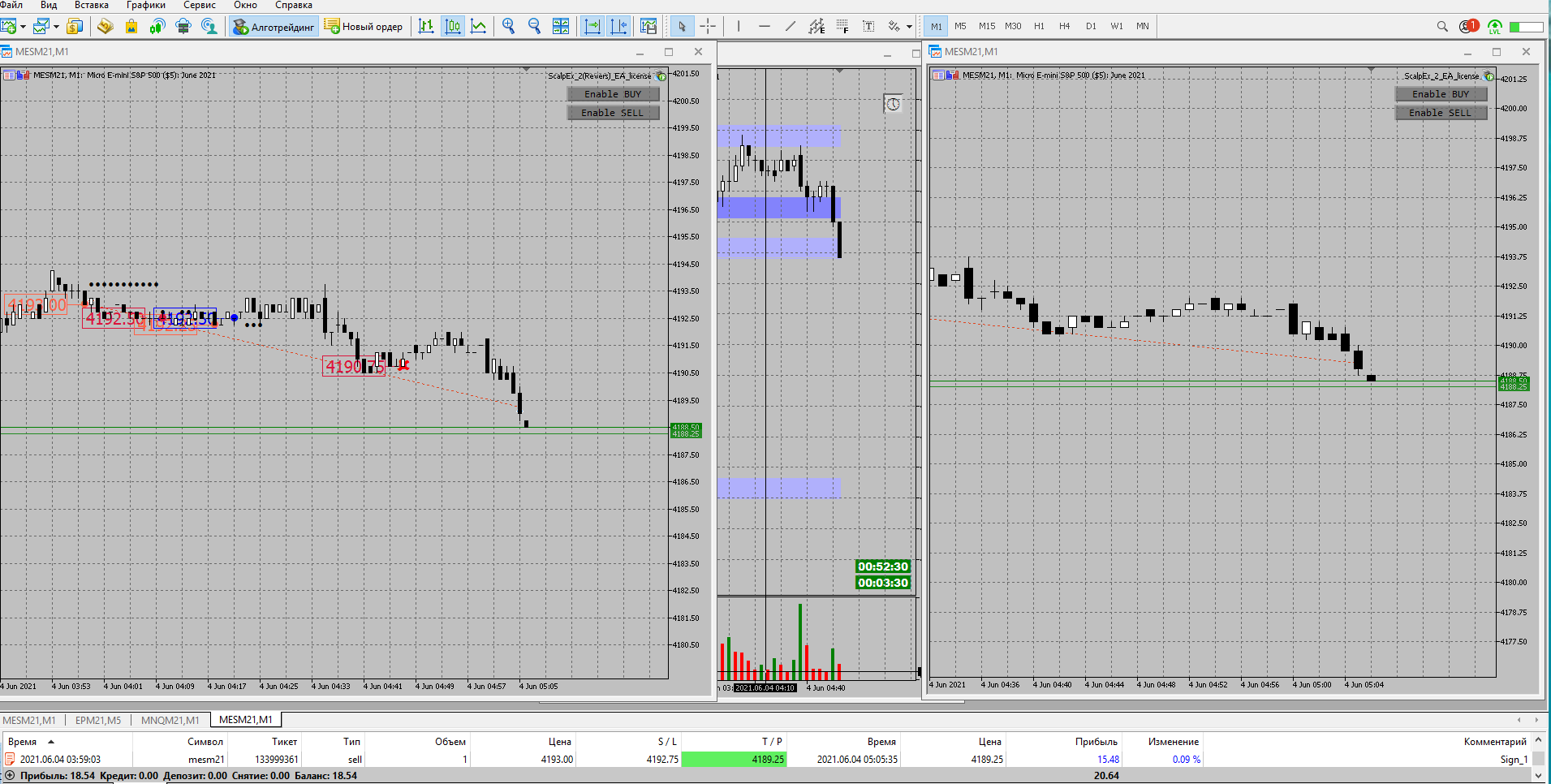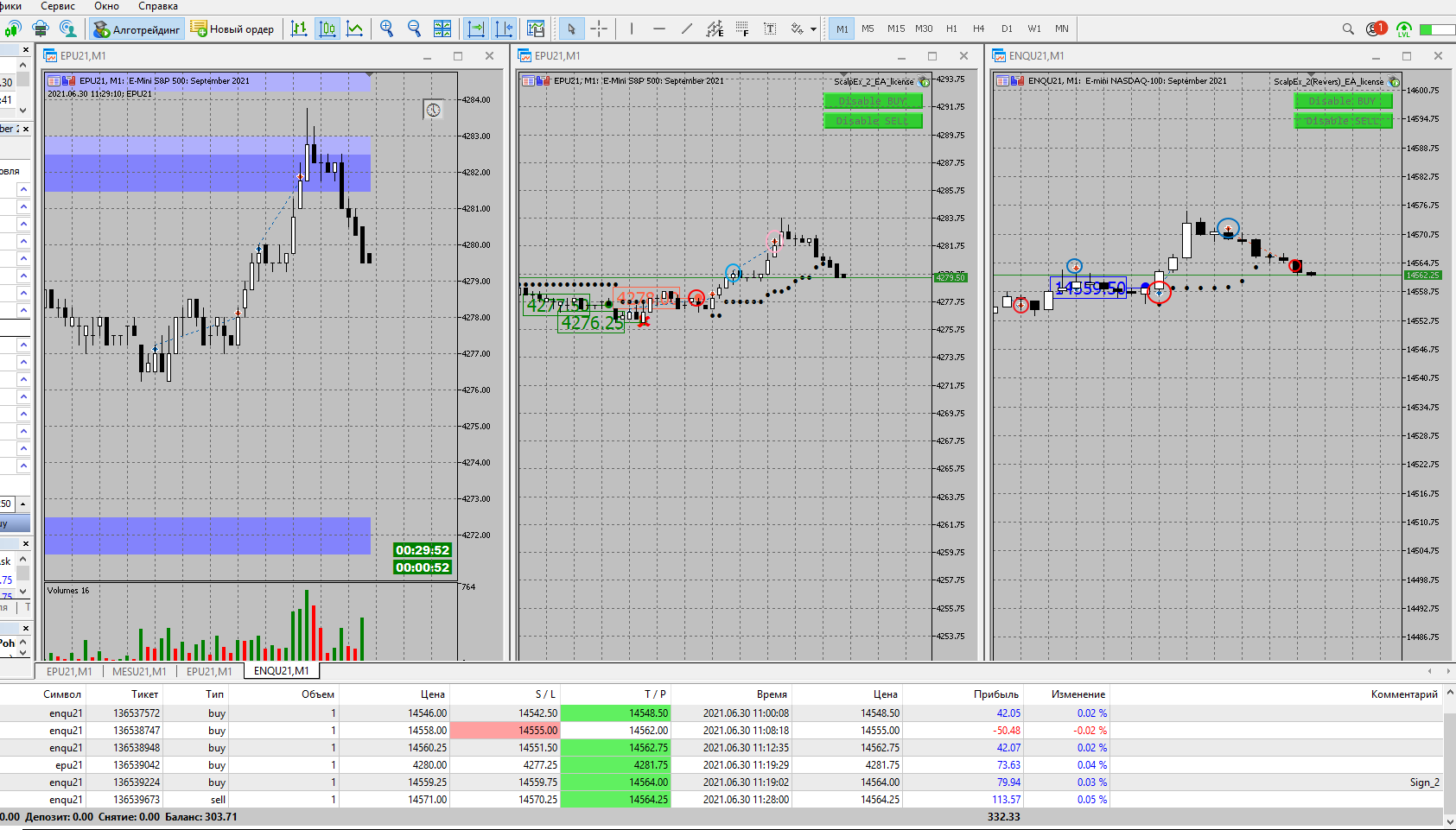 30.06.2021. Сделки на покупку до верхнего уровня и на продажу после отбоя от уровня. Профит на сегодня +303 euro с комиссией. Норма выполнена, можно выключать платформу.