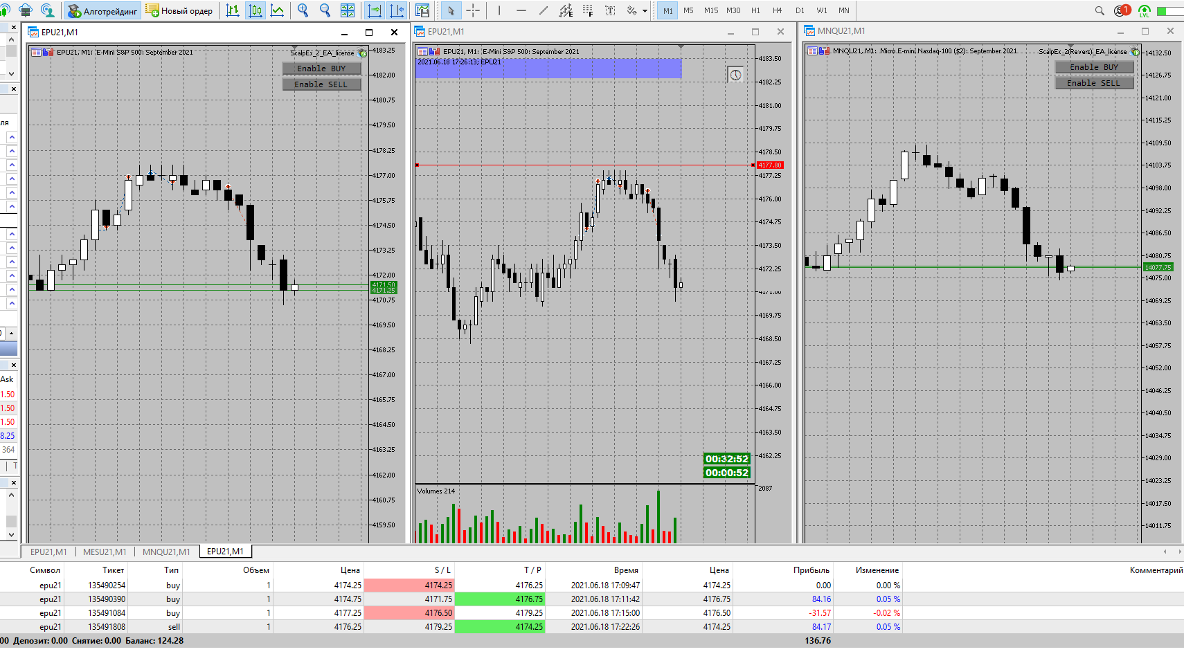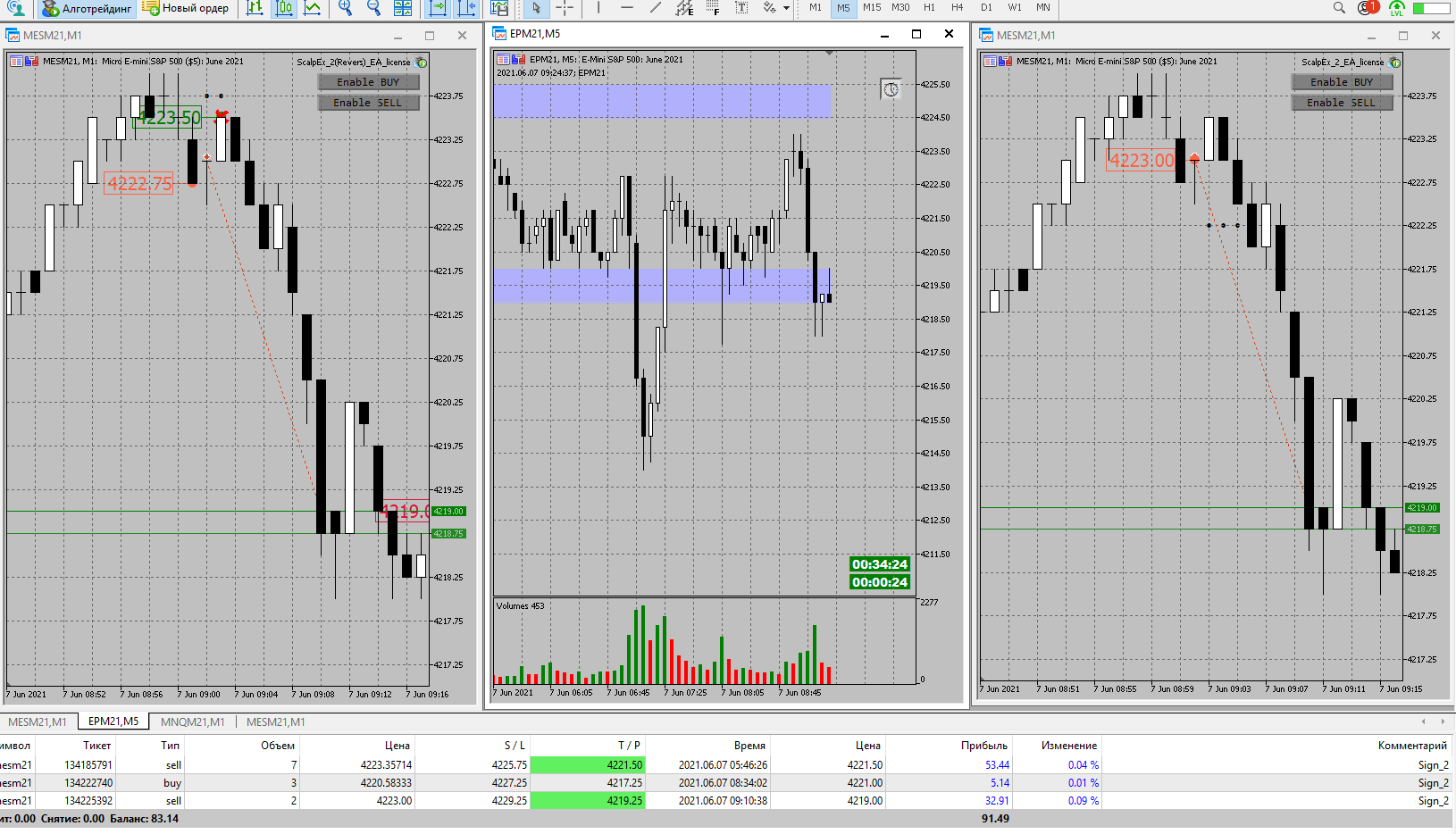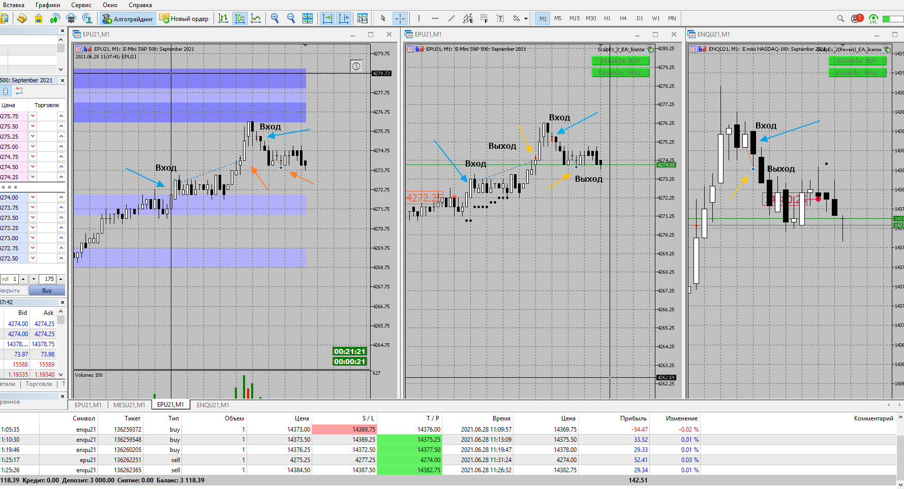 Сделки за 28.06.2021. Сделки на покупку при ретесте нижнего уровня и на продажу при отскоке от верхнего уровня. Открывал вручную. На сегодня норма сделана, можно закрываться. Профит +118,39 euro/