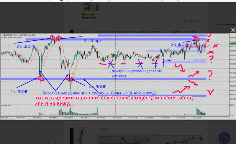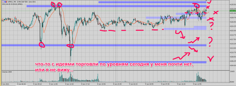 09/06/2021 Наблюдаю почти весь день за уровнями. Что-то идей нет, а коллеги торгуют. Видно что-то я упускаю. Подожду еще, может рынок что-нибудь подкинет