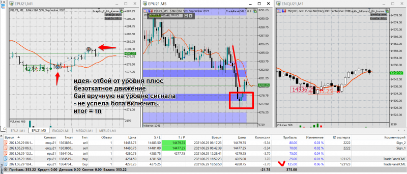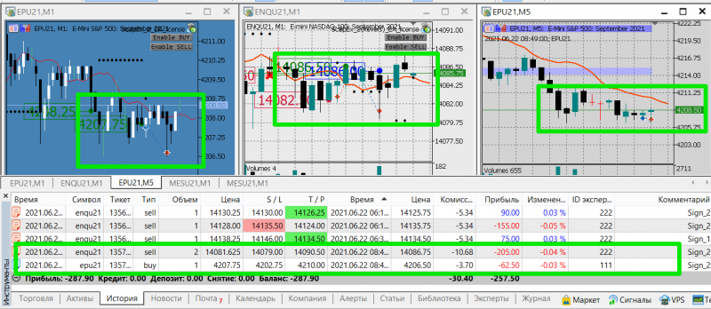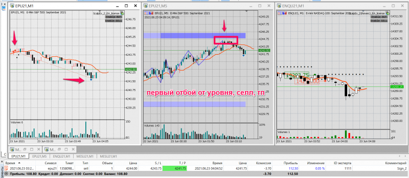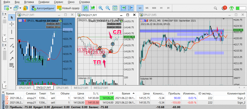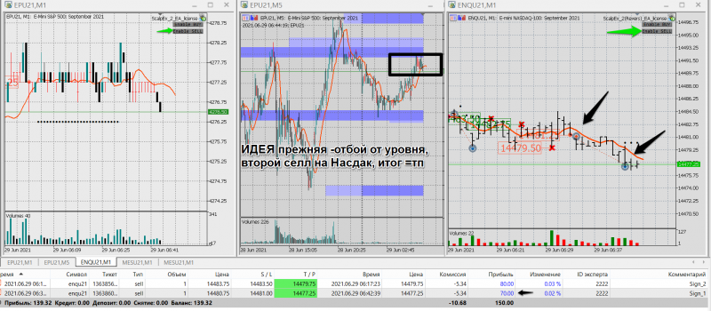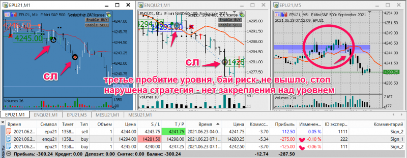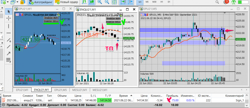 22/06/21 отчет по минусам. Что-то не могу приспособиться и найти входы по стратегияи третьего урока, С настройками с маленькими тейками пока больше минусую.