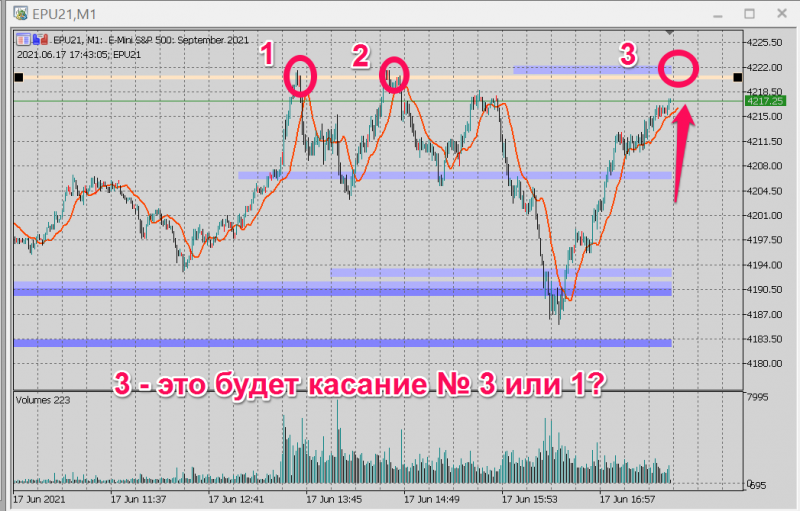 Вопрос. Как считать количество касаний уровня - ориентироваться на длину уровня по индикатору или надо смотреть что было на этом уровне ранее? пример на скане