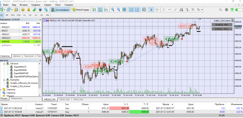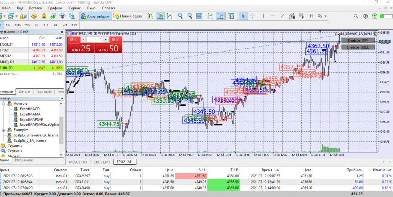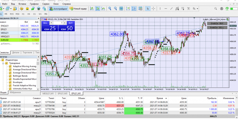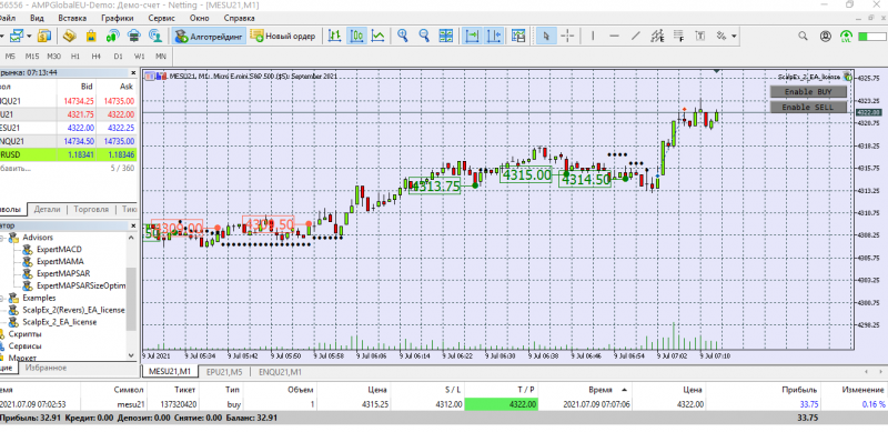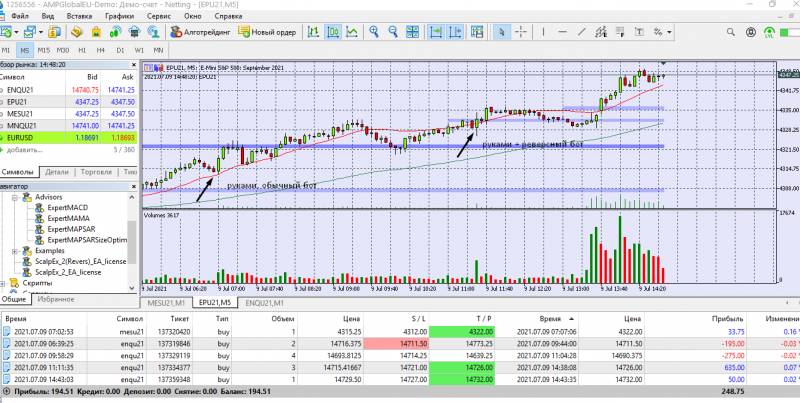 Включила оба бота в лонг. Сегодня боты сами открывали сделки. Пытаюсь высчитать оптимальное количество тиков на ТП и СЛ. Получается плохо. С математикой не дружу. Для микро контракта примерно определилась, а с реверсом - труба. Как правильно посчитать количество тиков( ведь на роботе тики стоят). Помогите пожалуйста, кто разбирается. Уроки все пересмотрела. Везде значения разные. Интересует мини контракт на СНП 500. Поздно открыла сегодня терминал, долго ждала закрытия реверса. Но все ОК.