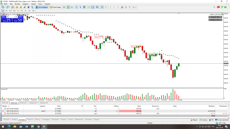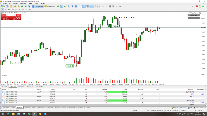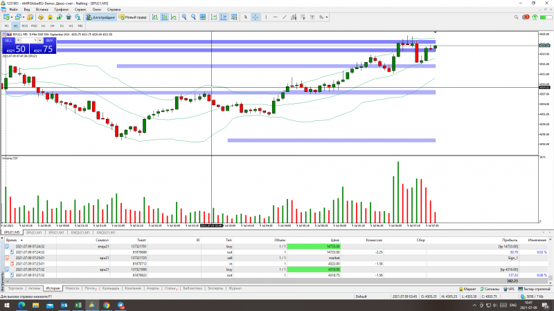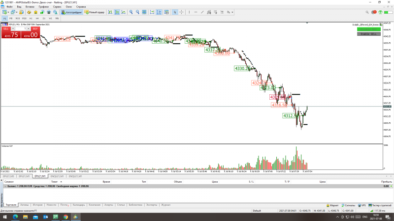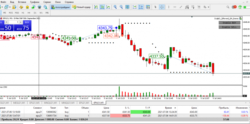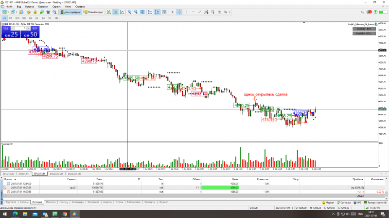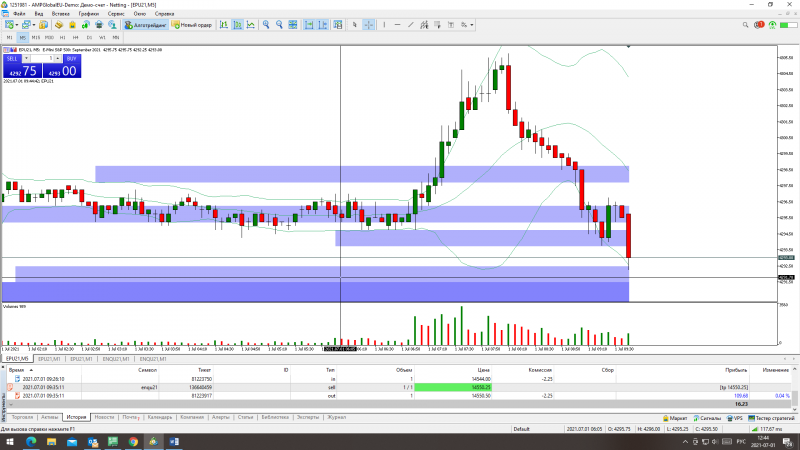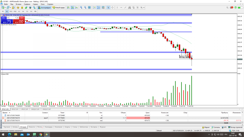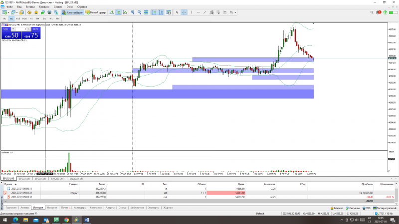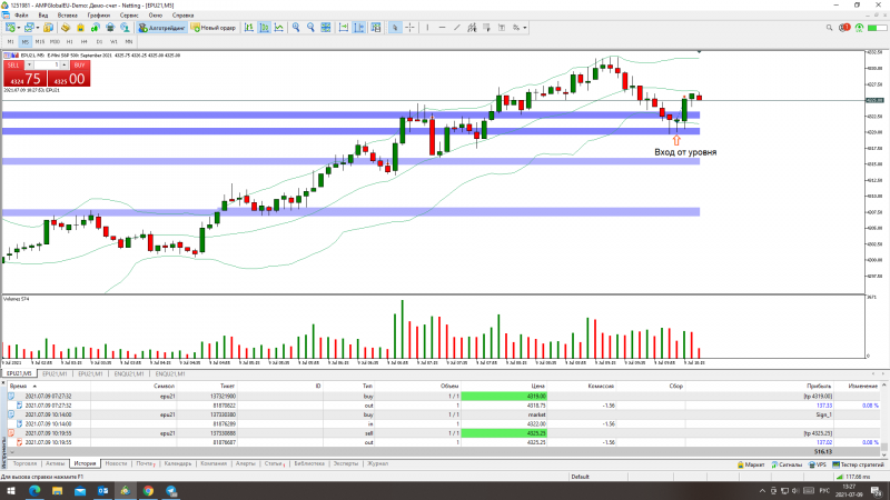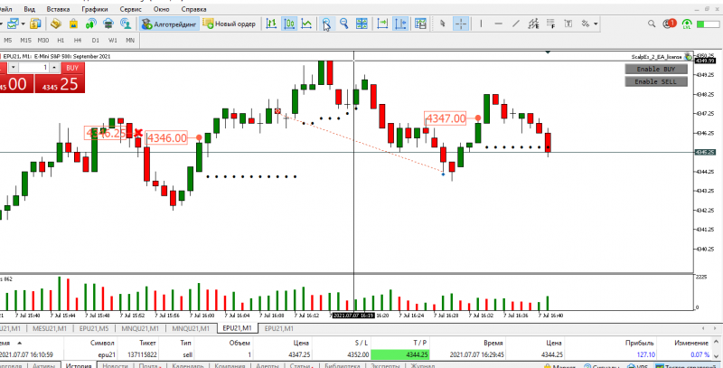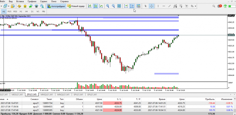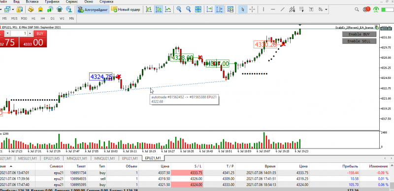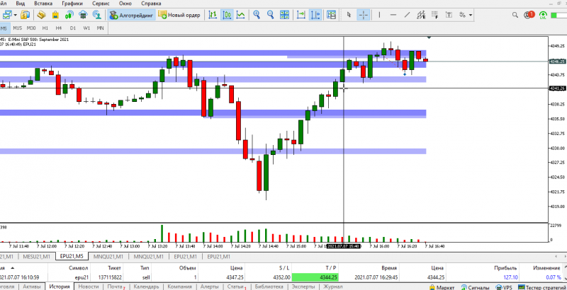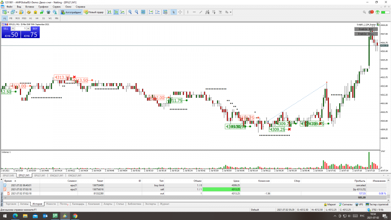 При подходе к уровню боты включила на продажу, сработал и SP500 и Насдак
