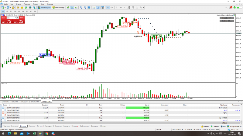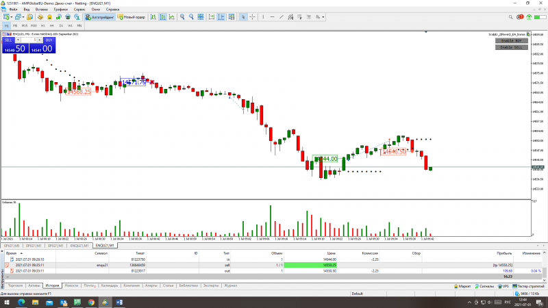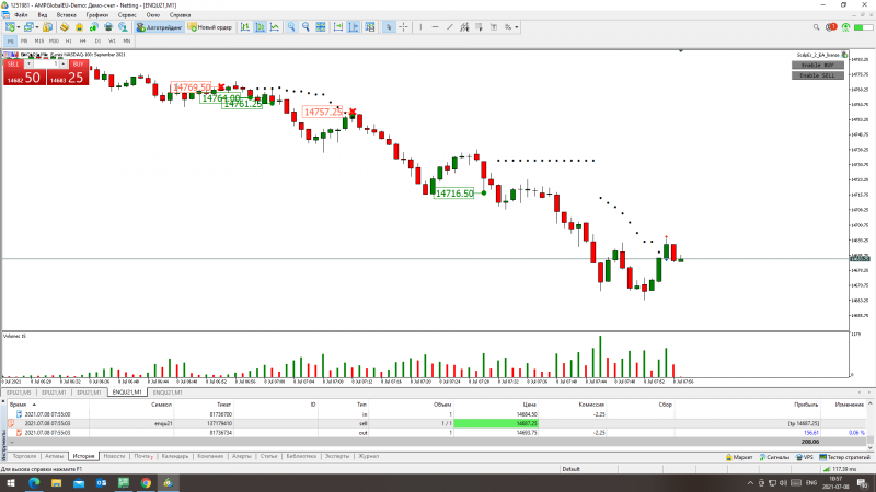 Подход к уровню, включила ботов на покупку, сработал насдак: