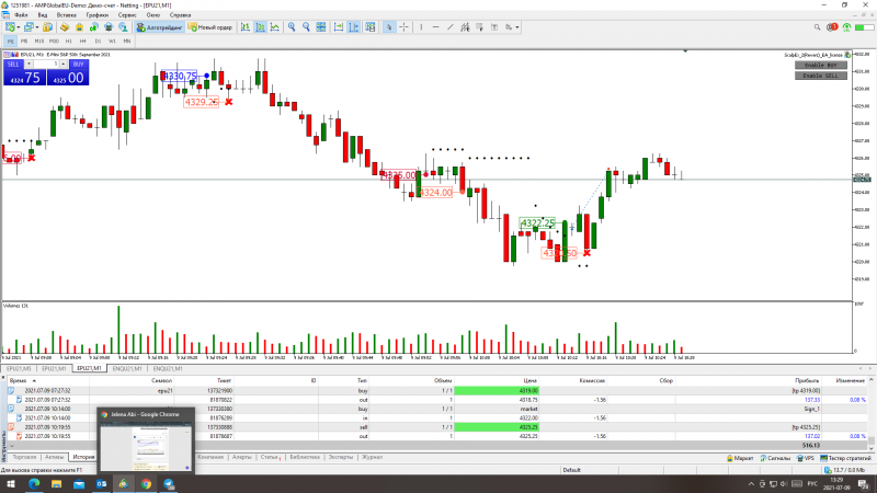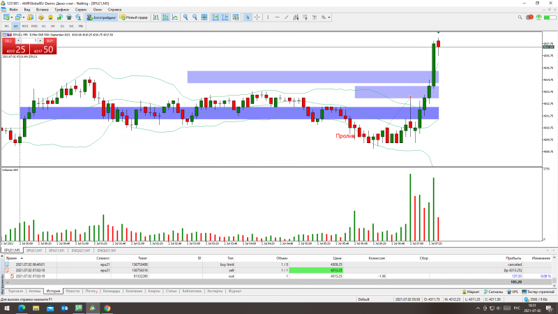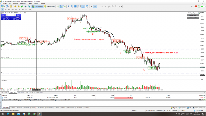Второй подход в лонг. Открылась сделка по насдаку, а по SP 500 так и не открылась, не поняла почему?