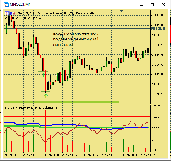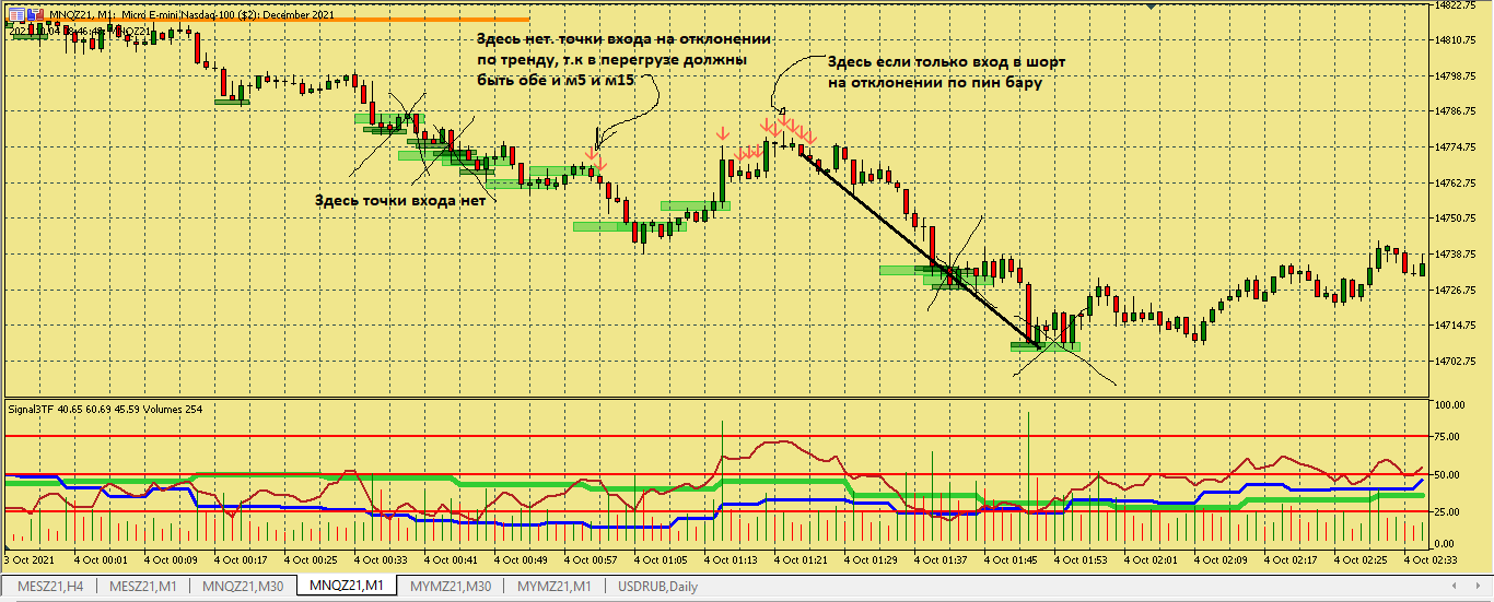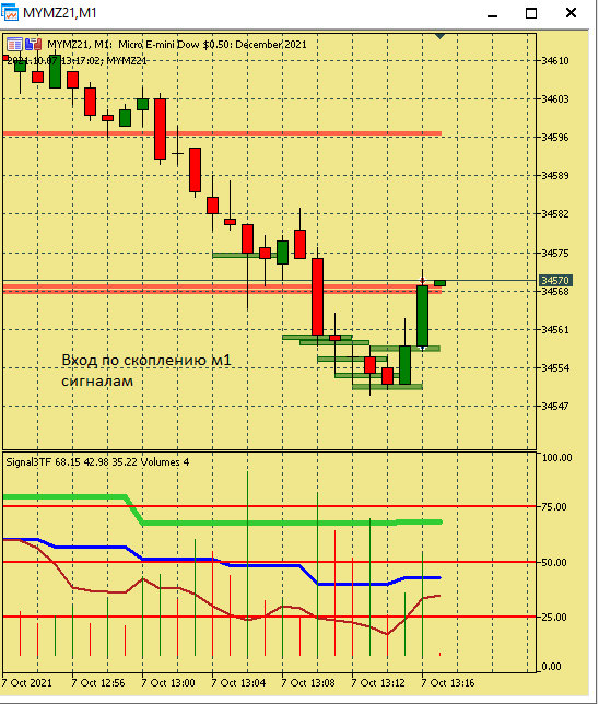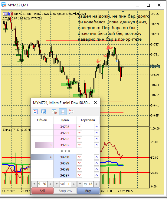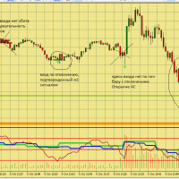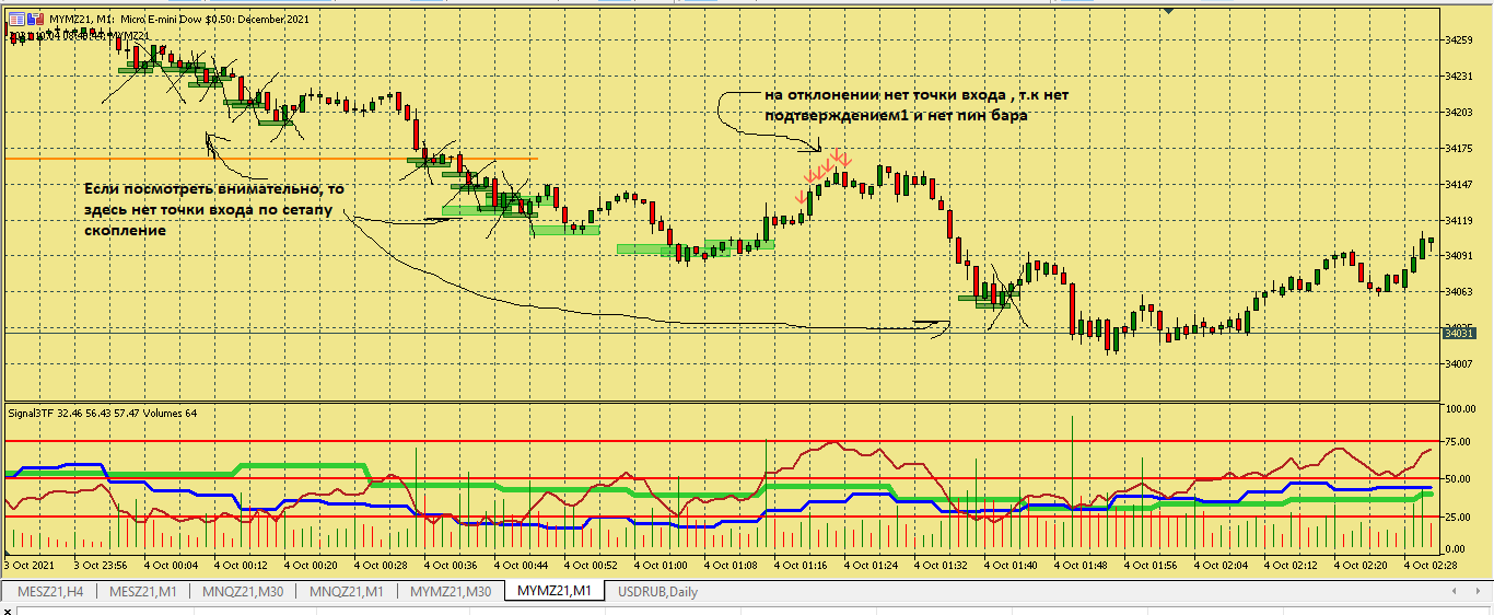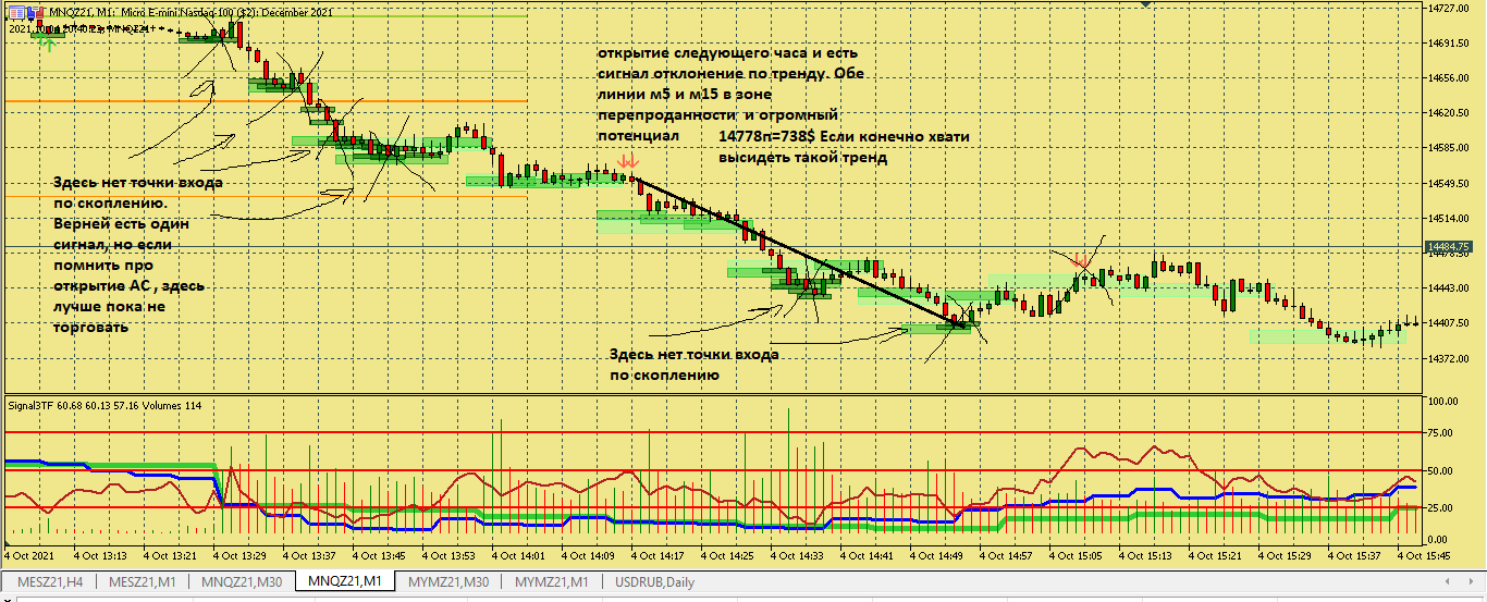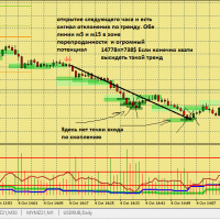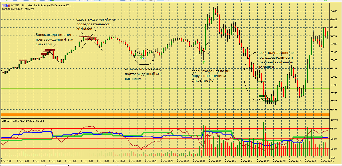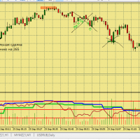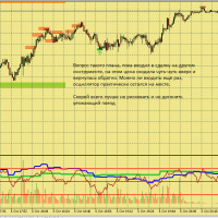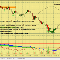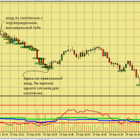 Размышление по поводу движения цены в этой ситуации. Вроде цена хорошо двигается, сигналы появляются друг за другом., отследил появление подтверждения , но сделка не пошла к цели. Здесь я думаю, что м5 была близка к зоне перепроданности и имеет свое влияние на движение цены в сторону перегруза, в то же время м15 тоже ниже 50, поэтому резкого разворота не получилось. Вот здесь надо по наблюдать, в других ситуациях с другим вариантами расположения м5 и м15 примерно в такой же ситуации.