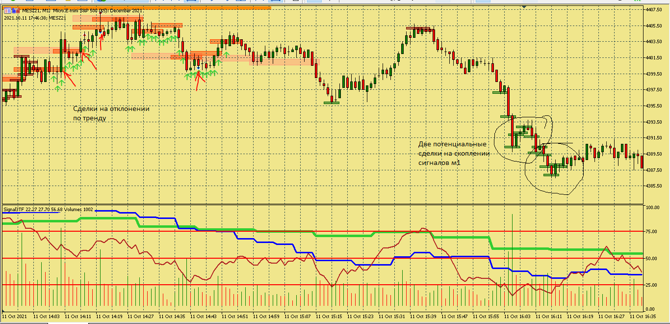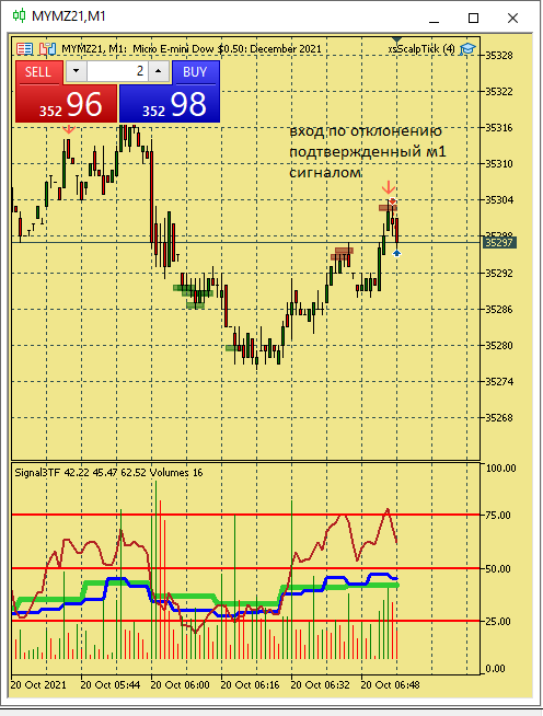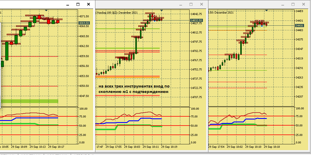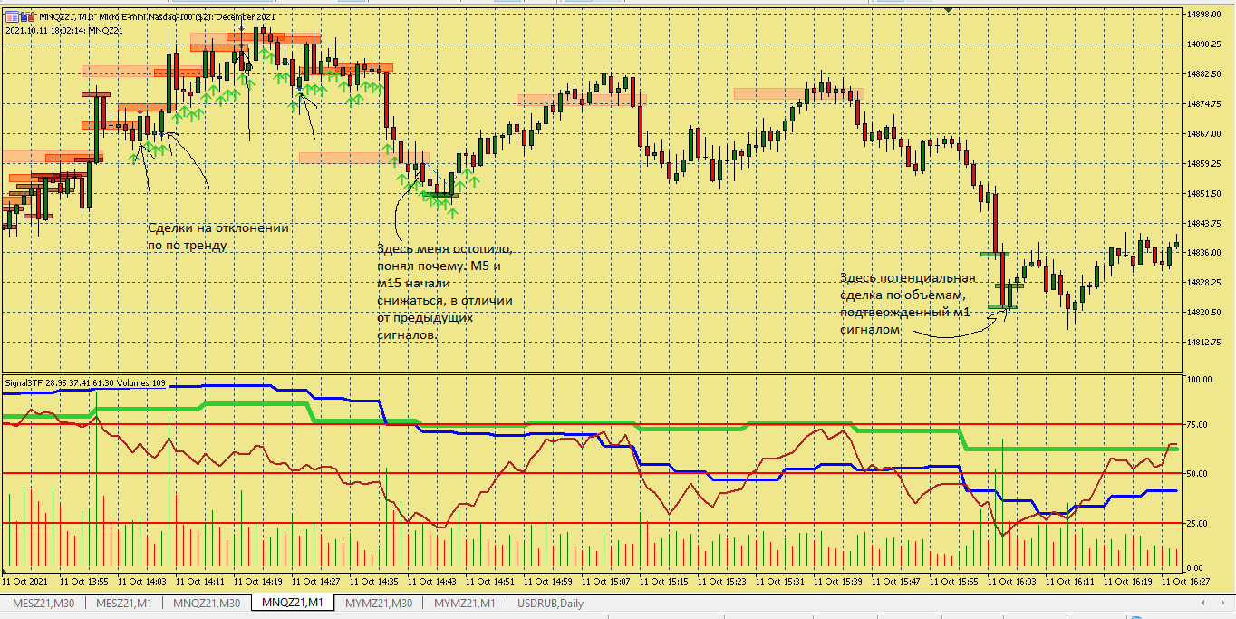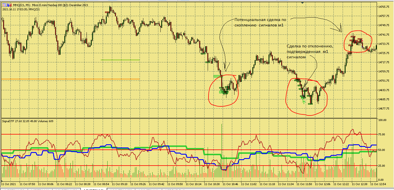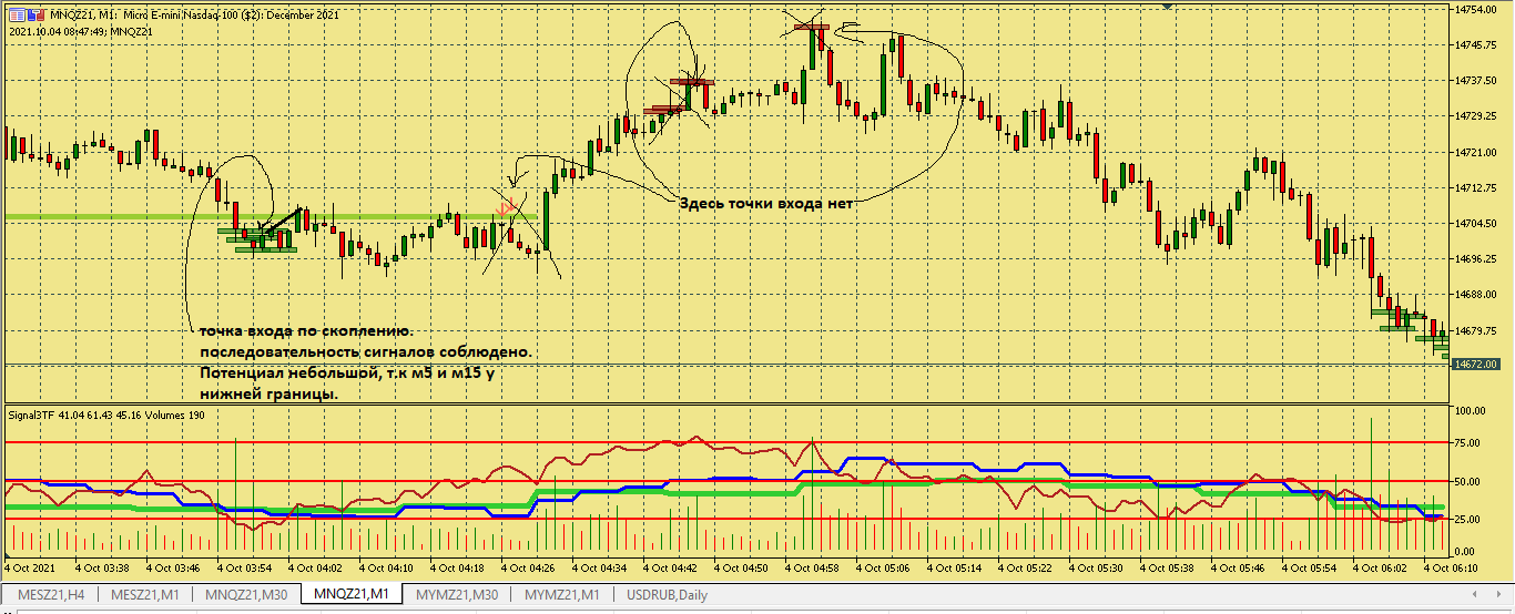 Размышление по поводу движения цены в этой ситуации. Вроде цена хорошо двигается, сигналы появляются друг за другом., отследил появление подтверждения , но сделка не пошла к цели. Здесь я думаю, что м5 была близка к зоне перепроданности и имеет свое влияние на движение цены в сторону перегруза, в то же время м15 тоже ниже 50, поэтому резкого разворота не получилось. Вот здесь надо по наблюдать, в других ситуациях с другим вариантами расположения м5 и м15 примерно в такой же ситуации.