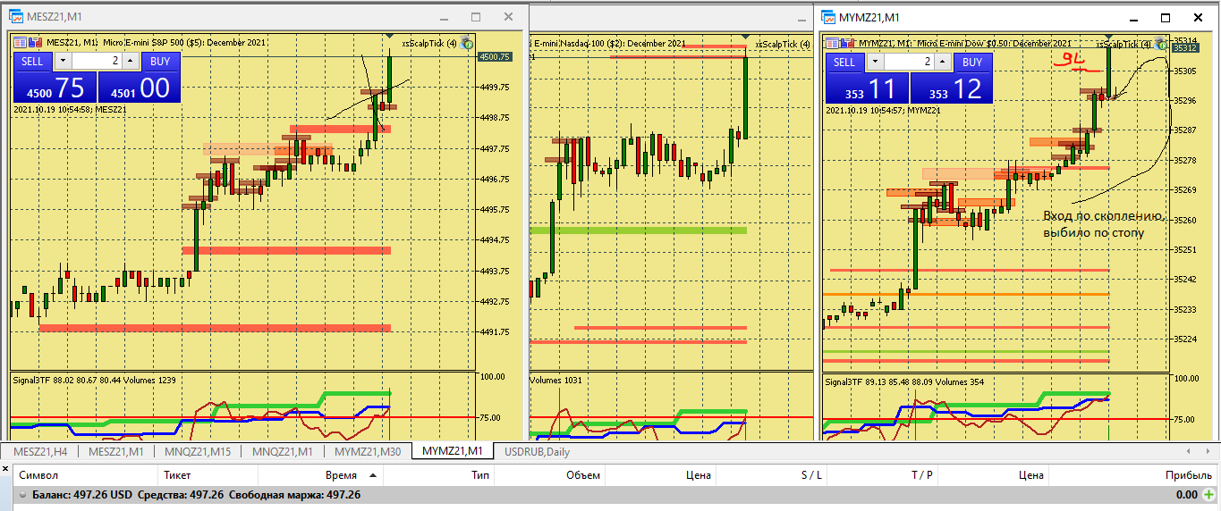 Сделка на скоплении отработала быстро. Раз тейки и стопы у меня разные, поэтому два стопа это больше чем два тейка.