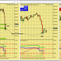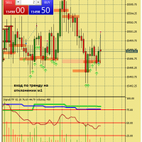 Ситуация под цифрой 2 и 3 уже сомнительный паттерн или не является паттерном отклонение по тренду т.к м5 уже вышла из зоны перегрузки и явно уже не даст того сигнала который нам нужен, а именно подсветку, появляются просто стрелки , на которые уже входить нельзя. Видно по скрину, что м5 пошла на коррекцию и имеет сильное влияние на движение против тренда. и вот уже 2 раза я натыкаюсь на такую ситуацию, скрин приложу ниже. Это и есть тот момент когда начинает отрабатывать фигуры разворота НР, дивергенция, которые формировались чуть выше и как раз сигналы на продолжение тренда появляются именно в момент зарождения этих фигур.