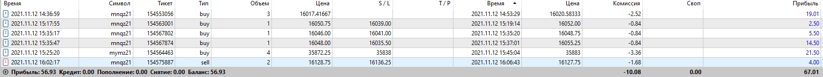 Инструменты: MNQ, MYM