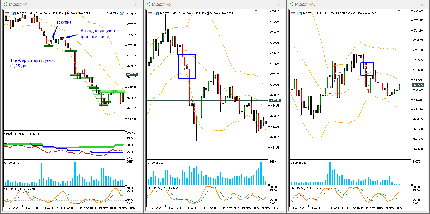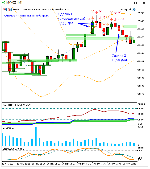 Но логика простая: М1 притягивается к М5, и также притягивается к М15, поэтому отклонения торгуются одинаково.