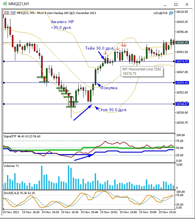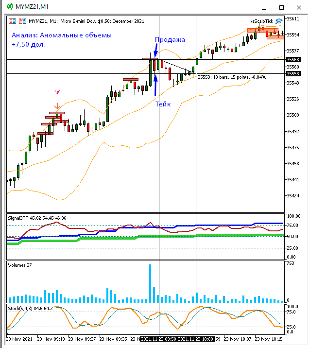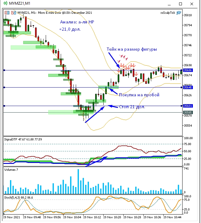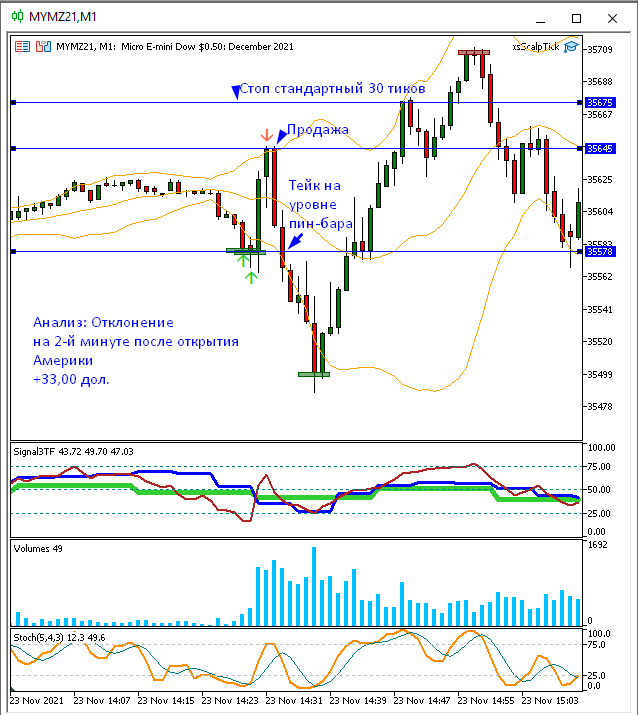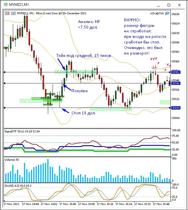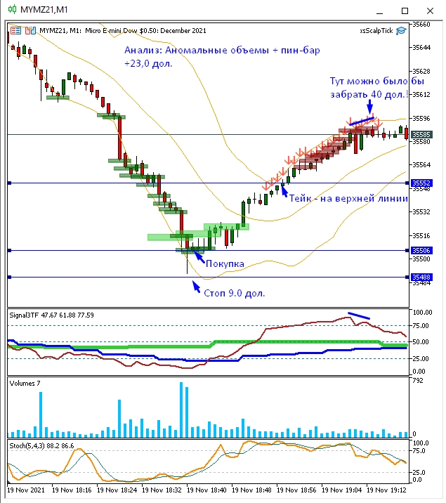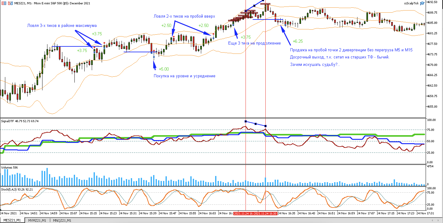 В начале американской сессии расстроился, что не успел к открытию и пропустил шикарное отклонение. Но потом насобирал по чуть-чуть дневную выручку в сделках, где был уверен! То есть мог бы зайти миниконтрактом без опасений!