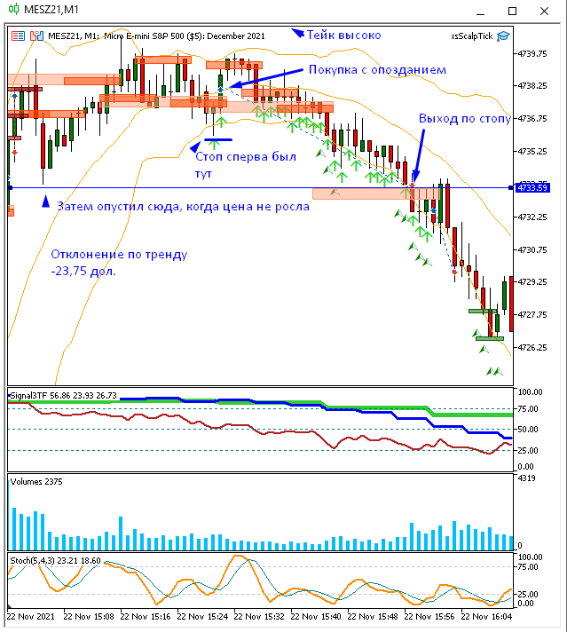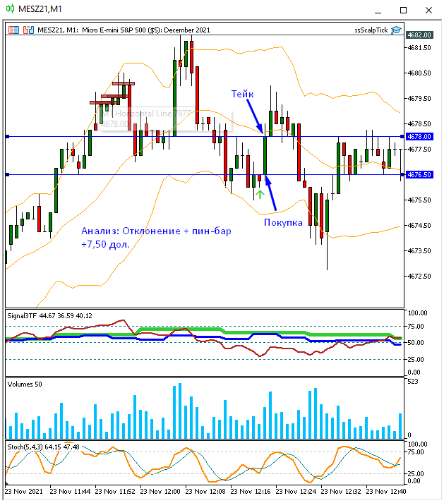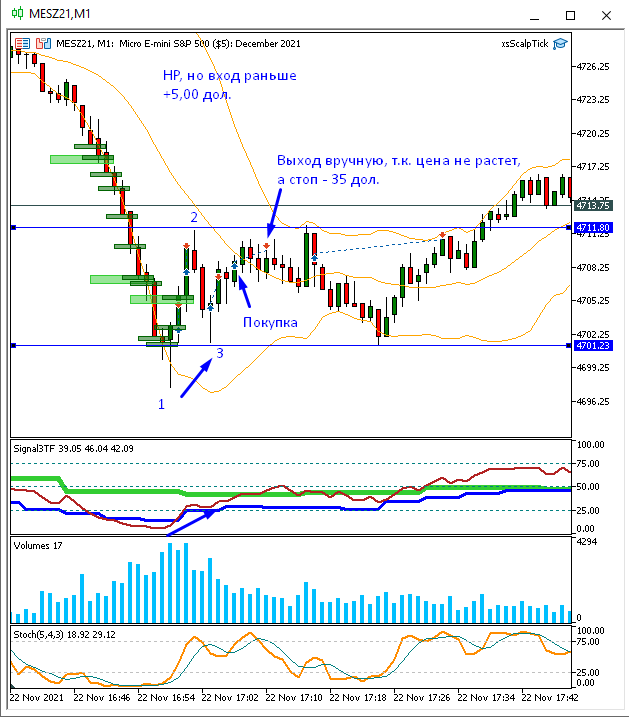 Встал на путь истинный (надеюсь). Наблюдал за графиком и не давал себе нажимать на кнопки, ждал. В итоге, из сигналов стратегии, который заметил и которому доверился, был один - отклонение. Отработало отлично!