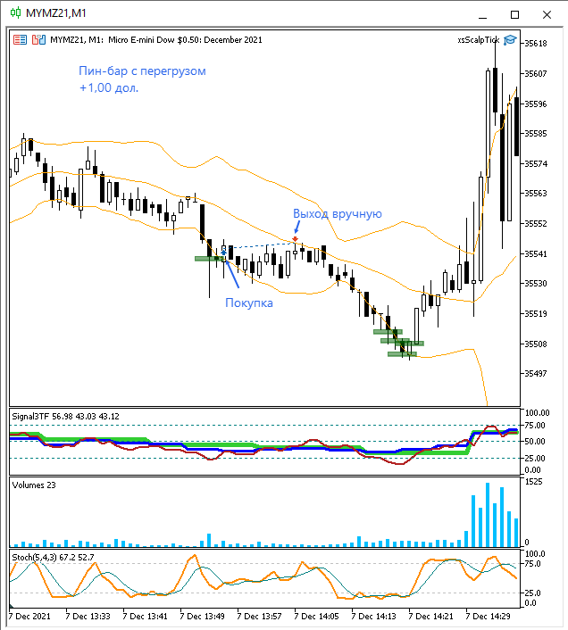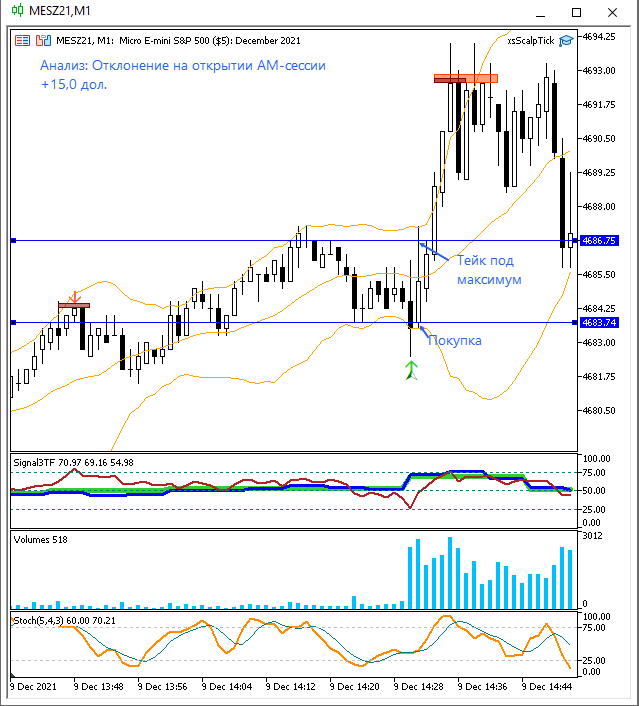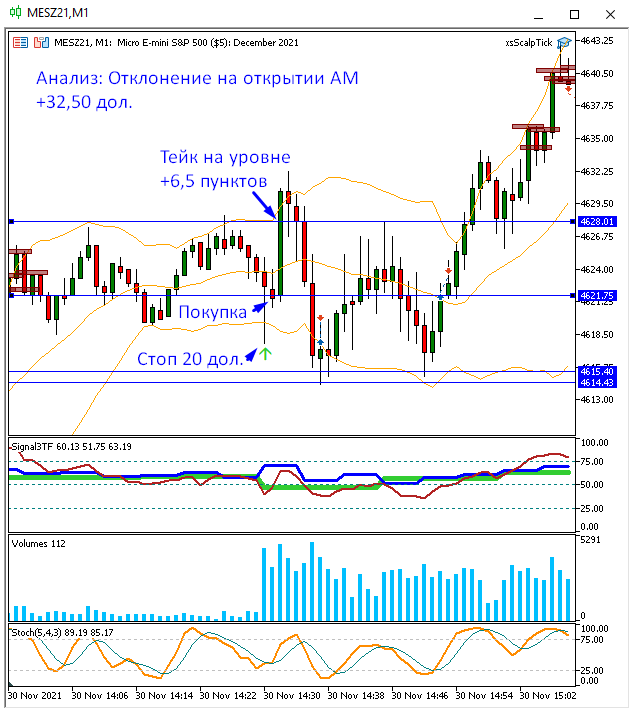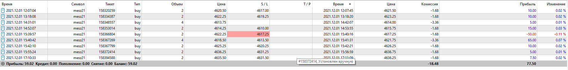 Мда, когда США не торгую, то результат совсем никудышный. Только несколькими контрактами нужно торговать в таких условиях. Нашел всего 3 сделки на двух инструментах. Учитывая, что я в тот день забрал $5, можно считать, что я неплохо потрудился)))