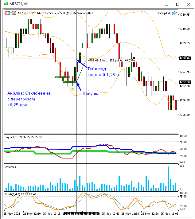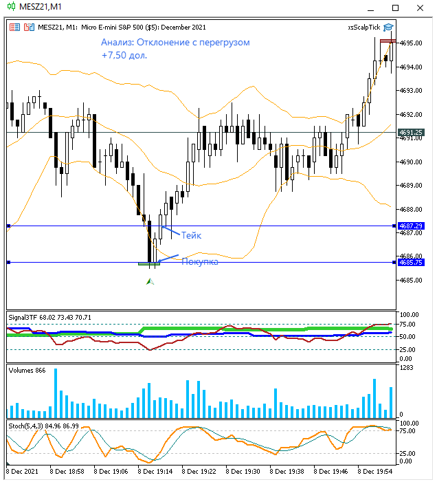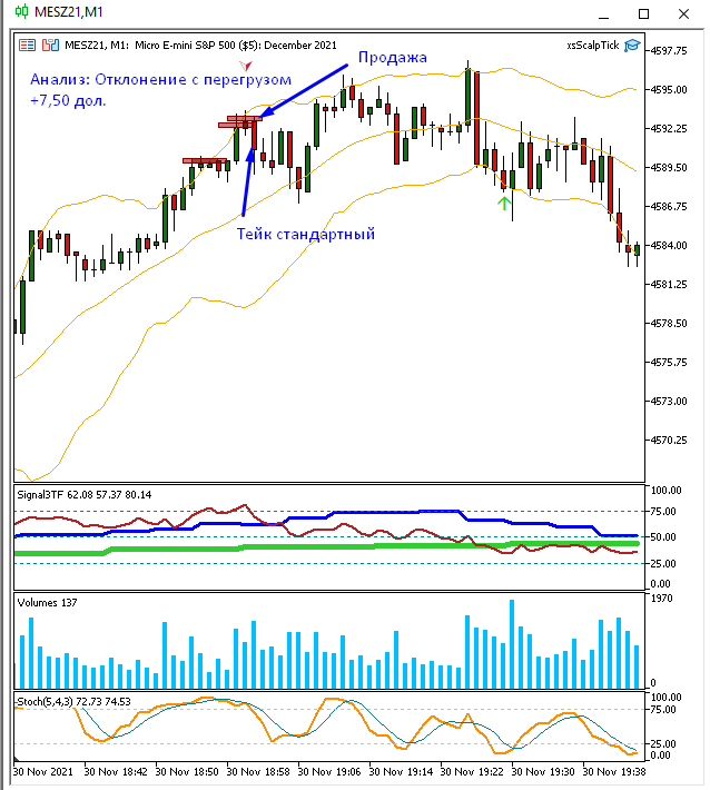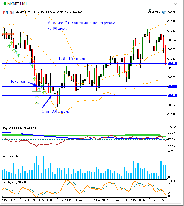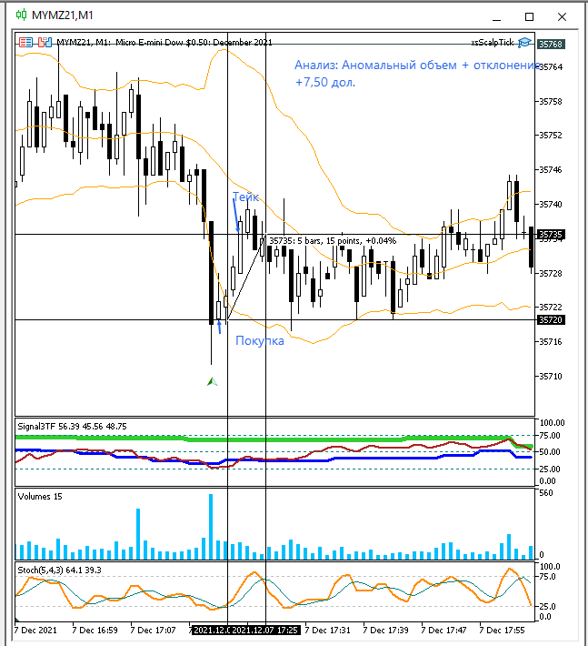 Уже и отчет написал и терминал закрыл, но потом заглянул, а там - отклонение! Правда без перегруза. Но не удержался и забрал еще 1,75 пункта. Очень хотелось совершить сделку по сигналу индикатора! А там затем еще такое падение началось. Вот я и думаю: я смогу когда-нибудь еще больше, чем 1-2 пункта забрать в сделке?.. ))
