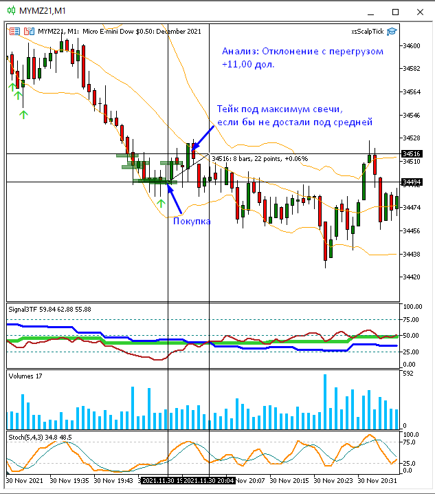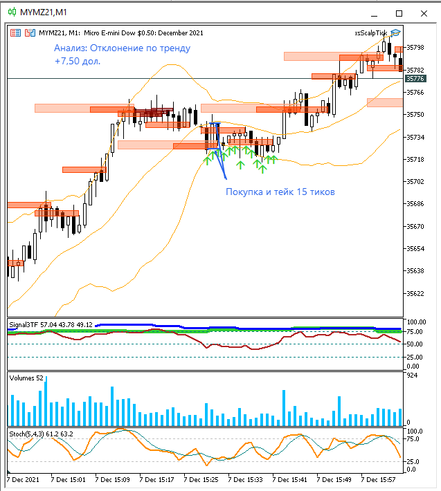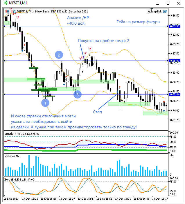 Два сигнала по стратегии заметил. В отклонении по тренду побоялся сидеть, но перезашел еще дважды. На миниконтракте прибыль за день составила бы $150.