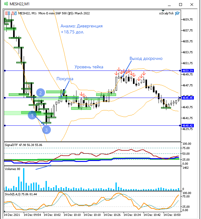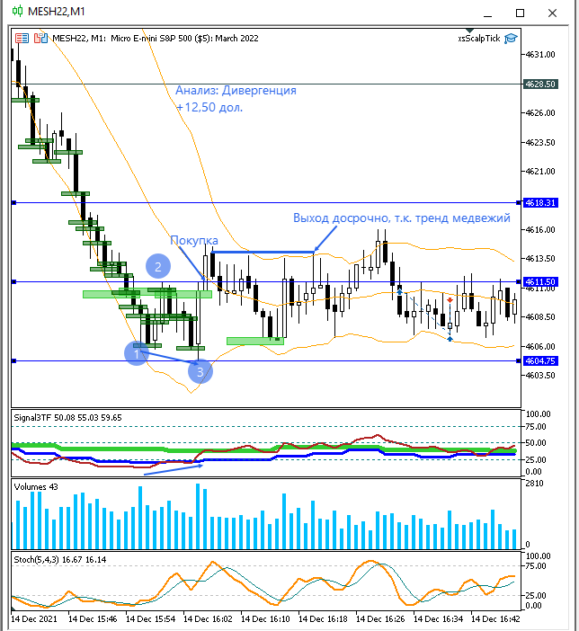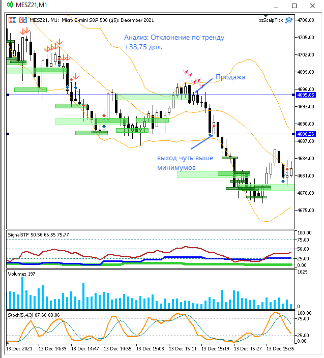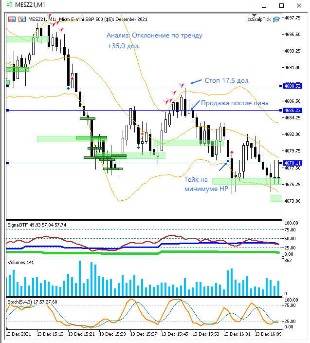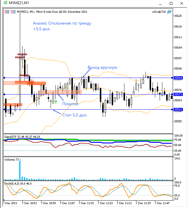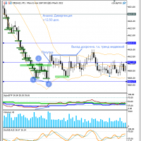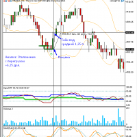 Входил по 2 контракта в сделку, поэтому получилось заработать быстрее. Сигналы стратегии (диверы, отклонения по тренду) не видел во время своей торговли. Завтра посмотрю.
