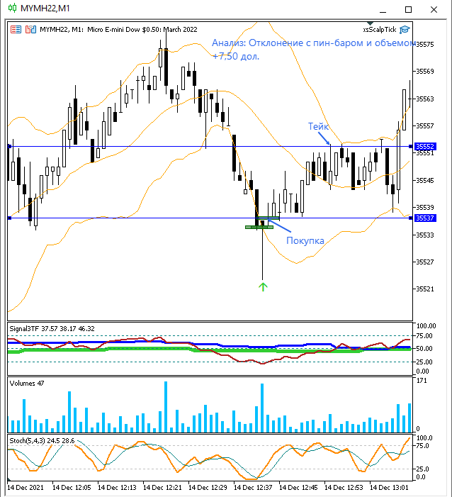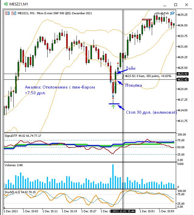 Отрадно, что одну из сделок в анализе я совершил в реальном времени! На микро результат неплохой, т.к. на мини это было бы порядка $200!