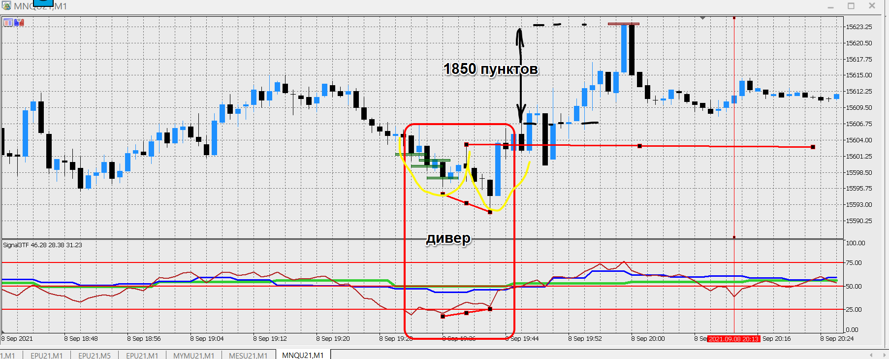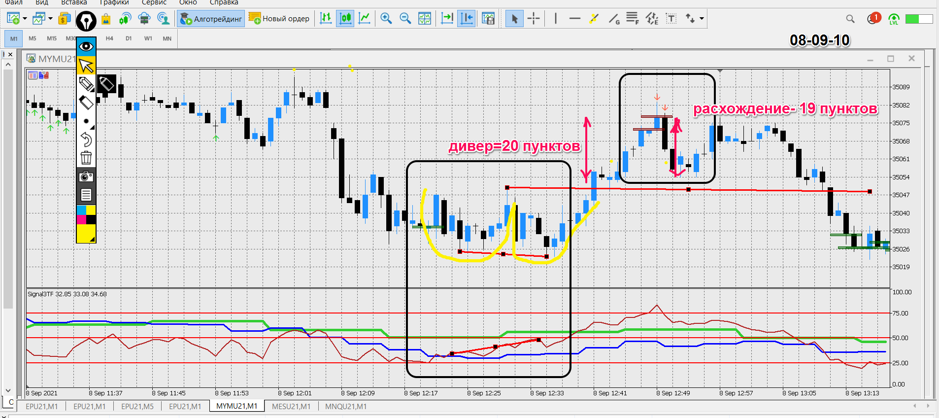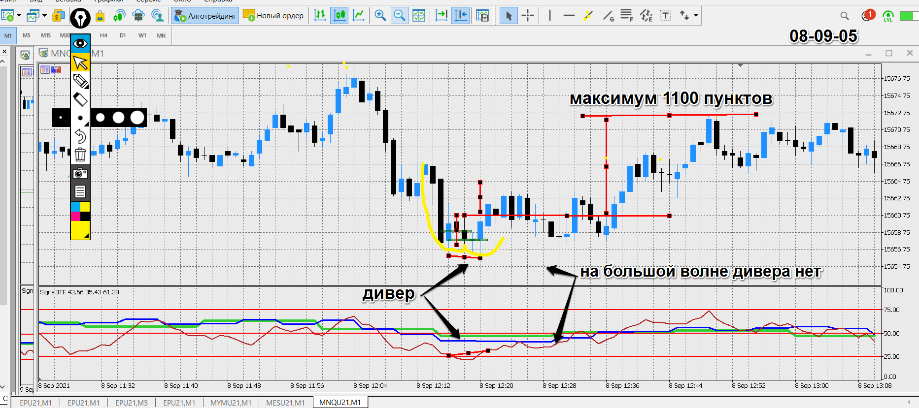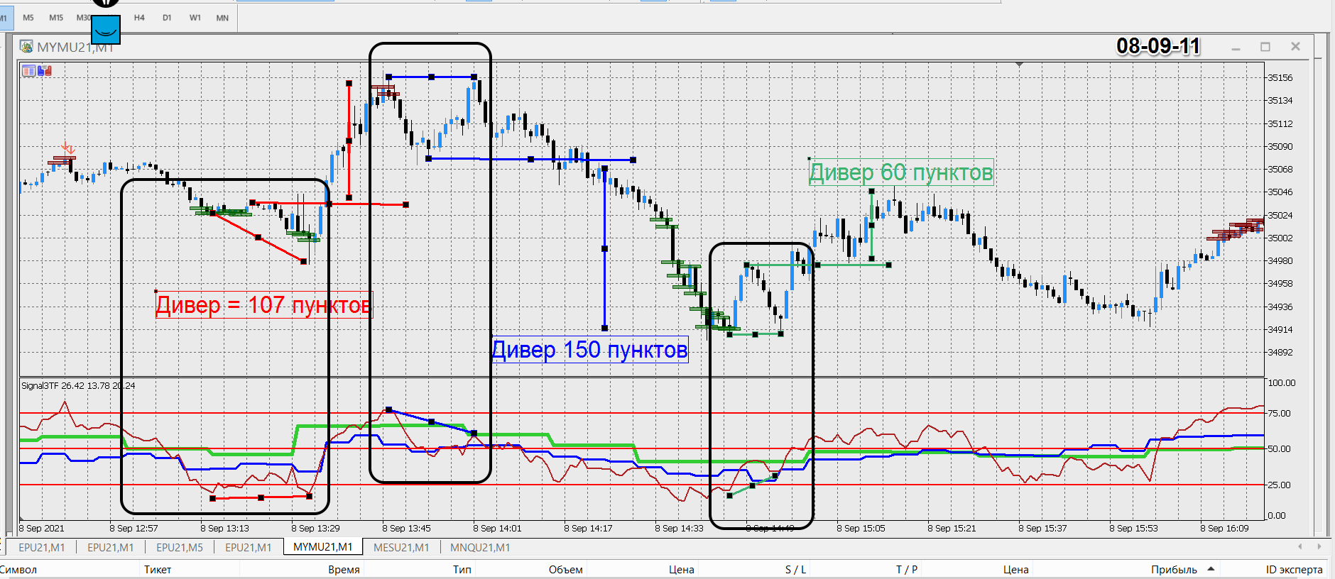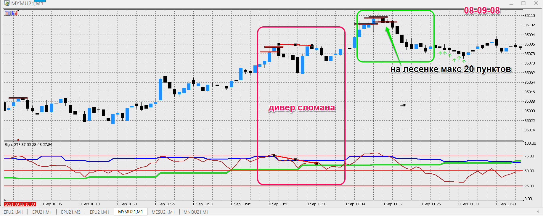 анализ 09-09-21 - сегодня меньше было бы входов. Скрины только по тем ситуациям, которые понятны